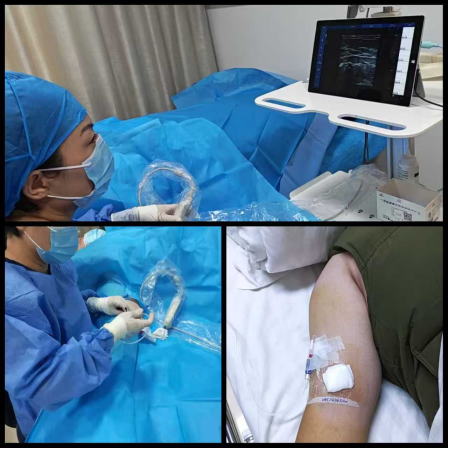 面对这一特殊情况,科室护士长高度重视,立即上报护理部请求支持。护理部迅速响应,启动多学科护理会诊机制,组织导管室护士长张欣欣、心内科护士长苏凤香及门诊护士长李芳共同参与。三位护士长对患儿进行了全面细致的评估,包括血管走向、皮肤状况及治疗需求等,经综合研判,最终确定了为患儿实施“中长导管置入术”的最佳方案。