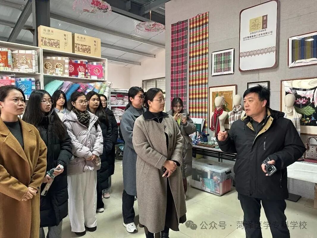 为落实立德树人根本任务,引导青年学生在实践中感悟中华优秀传统文化的时代价值,增强文化自信,12月16日,菏泽医专口腔医学系组织青马学员代表赴国家级非物质文化遗产生产保护示范基地——鄄城县鲁锦工艺品有限责任公司,开展学习调研活动。口腔医学系党总支副书记牟翠荣、全体专职辅导员及青马学员代表参加活动。