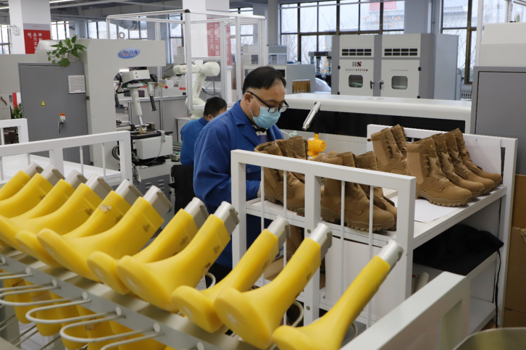去年年末,金猴数字化智能制鞋工厂顺利完成试产。“我们联合意大利研发的胶粘类制鞋流水线,引入了国际顶尖的机械手、圆盘注射等智能设备,工作人员只需在电脑中预设参数,机械臂即可精准完成帮脚打粗、涂胶等关键工序。”金猴集团鞋业公司设备部部长丛晓伟介绍,智能设备模拟人工操作手法,不仅将单双鞋成型时间从20分钟压缩至4分钟,更实现人工成本降低30%以上、生产效率提升30%的成效。
