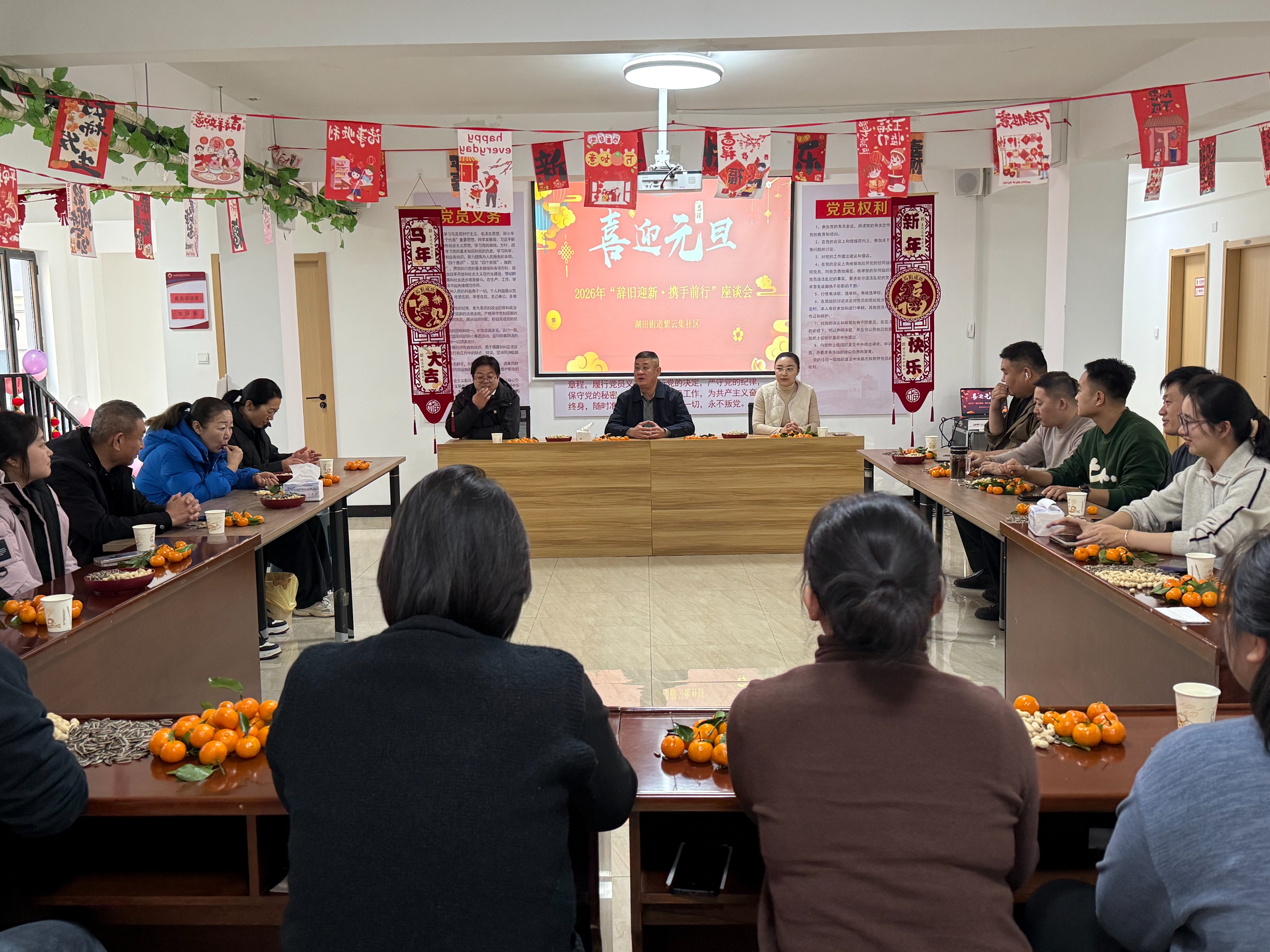 12月27日下午,张店区湖田街道紫云集社区联合小区物业、党员代表与居民代表,在社区活动中心成功举办了“辞旧迎新,携手前行”主题座谈会。活动旨在回顾过去、展望未来,凝聚共识、汇聚合力,共同谋划社区发展新篇章。