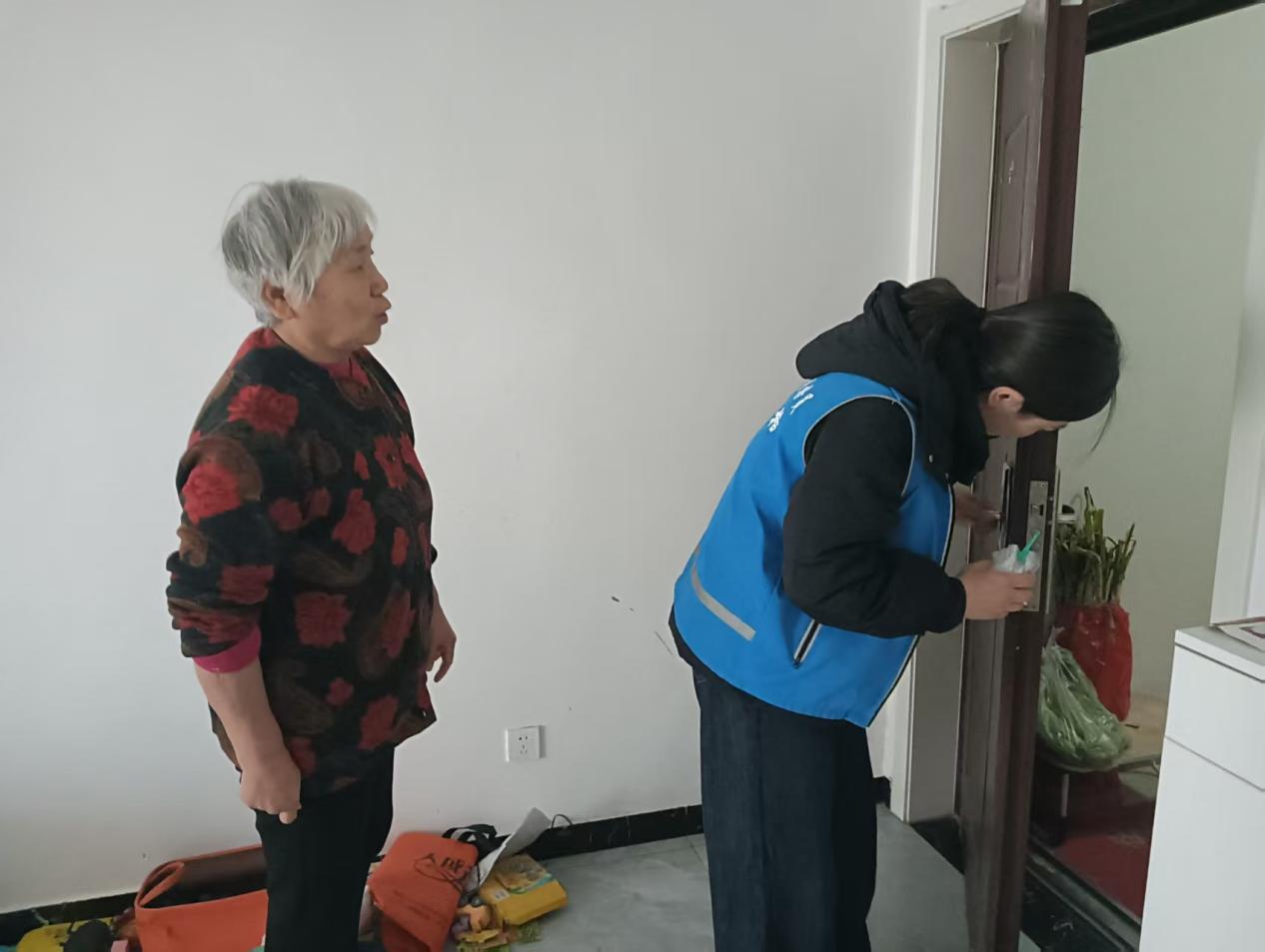 网格员小李像往常一样在辖区内开展日常巡查走访,发现山阿姨早上出门买菜,回家时发现门锁出了故障,门怎么都打不开。了解情况后,小李仔细查看门锁的情况。先找来润滑油,小心翼翼地往锁芯里滴了几滴,又轻轻晃动钥匙尝试转动。经过调试,门锁终于“咔嗒”一声打开了。临走前,把自己的手机号码存到了老人的手机里,方便她随时联系。