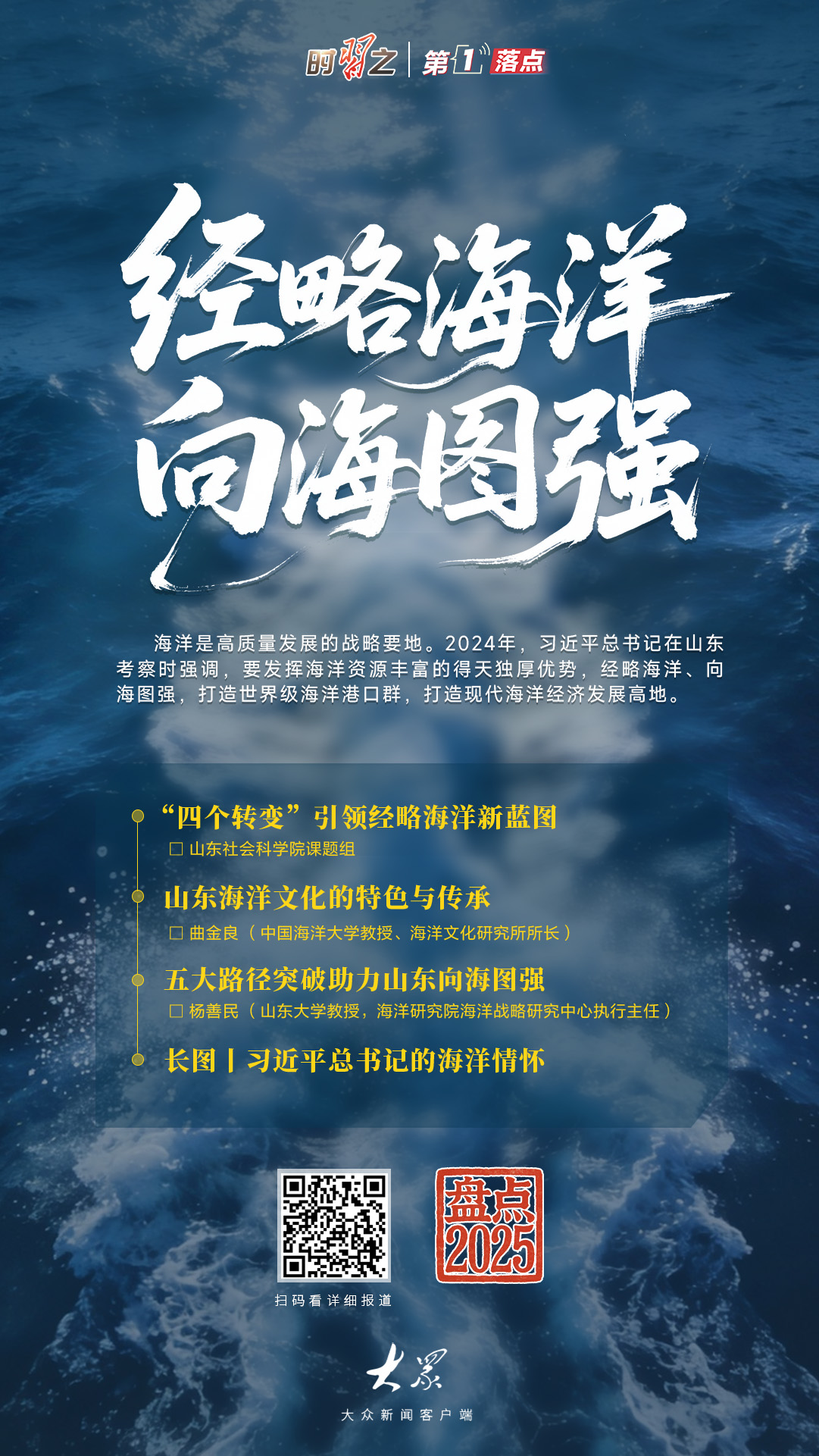 海洋是高质量发展的战略要地。2024年,习近平总书记在山东考察时强调,要发挥海洋资源丰富的得天独厚优势,经略海洋、向海图强,打造世界级海洋港口群,打造现代海洋经济发展高地。2025年,大众日报理论版围绕这一主题,刊发一系列文章,为山东的海洋战略汇聚创新智慧、凝聚思想合力。