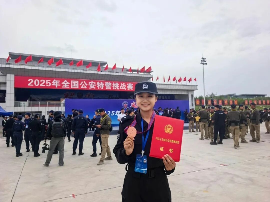 盛夏时节,训练场上热浪灼人。一位年轻女警纹丝不动地伏在狙击位上,汗水浸透警服。她叫商芳兵,2025年7月,在乌鲁木齐举办的“尖刀·使命”2025年全国公安特警挑战赛上,以优异的成绩斩获女子狙击枪射击全国第三名,获得季军。