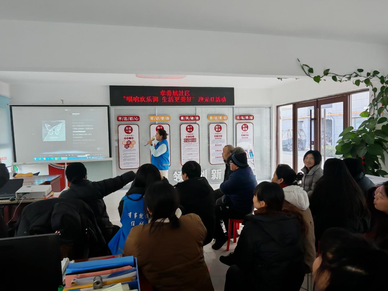 为喜迎元旦佳节,营造欢乐祥和的节日氛围,近日,孝养城社区网格中心在社区活动室开展了“唱响欢乐调 生活更美好”主题歌唱活动,邀请辖区居民共同用歌声迎接新年。