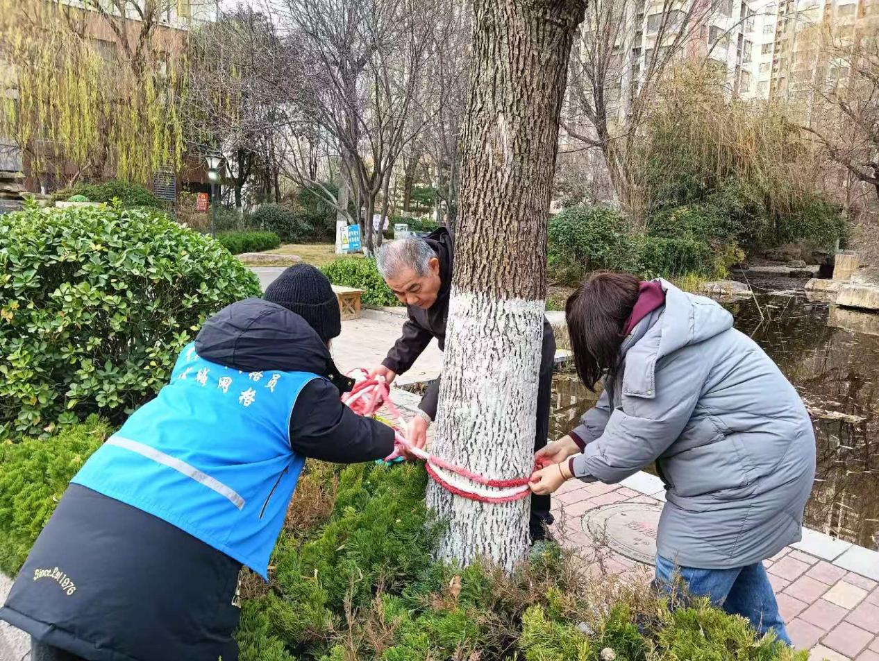 南苑街道南池社区开展“妙手绘冬 指尖传情”树木装扮活动