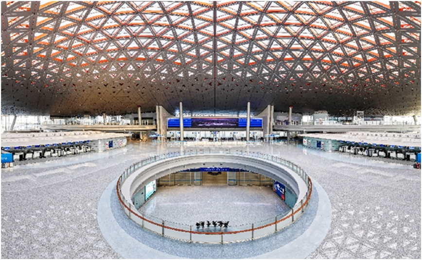 作为绿色施工科技项目,机场广泛应用节能技术,ETFE气枕膜结构兼顾采光、保温与消防排烟功能,金属屋面系统实现高效节能,采用高效变频机电设备提高能源利用效率,同时结合机场建筑特点从设计中考虑人性化措施,如无障碍、交通便利性等方面设计措施,为乘客提供舒适便利的使用空间,实现了建筑与自然的和谐共生。