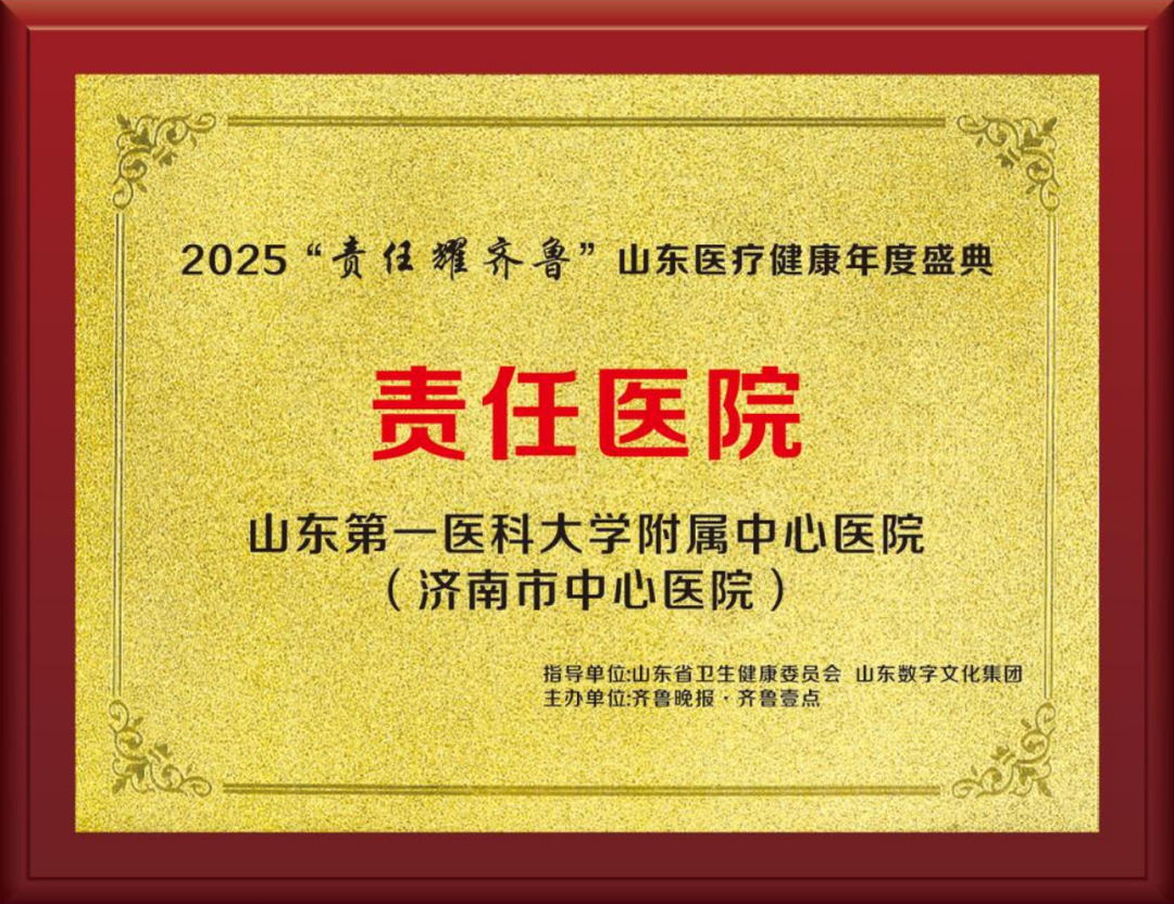 责任耀齐鲁,使命永相传。本次盛典既是对2025年山东医疗健康事业发展成果的总结与致敬,更是对未来发展的谋划与期许。济南市中心医院将以这份荣誉为新起点,以责任为灯塔,以使命为航向,在守护全民健康的道路上持续深耕、砥砺前行,书写更多医者担当的崭新篇章。