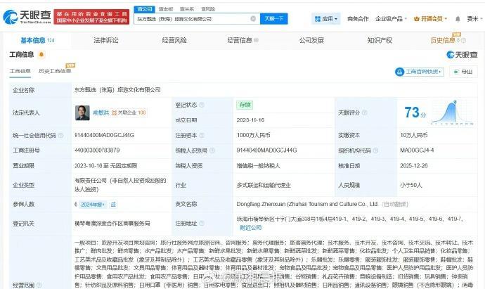 该公司成立于2023年10月,注册资本1000万人民币,经营范围含旅游开发项目策划咨询、票务代理服务、旅客票务代理等,由北京新东方迅程网络科技有限公司全资持股。值得一提的是,此前,孙东旭已卸任东方甄选(北京)科技有限公司、北京德信东方网络科技有限公司、北京新远方人力资源服务有限公司职务。