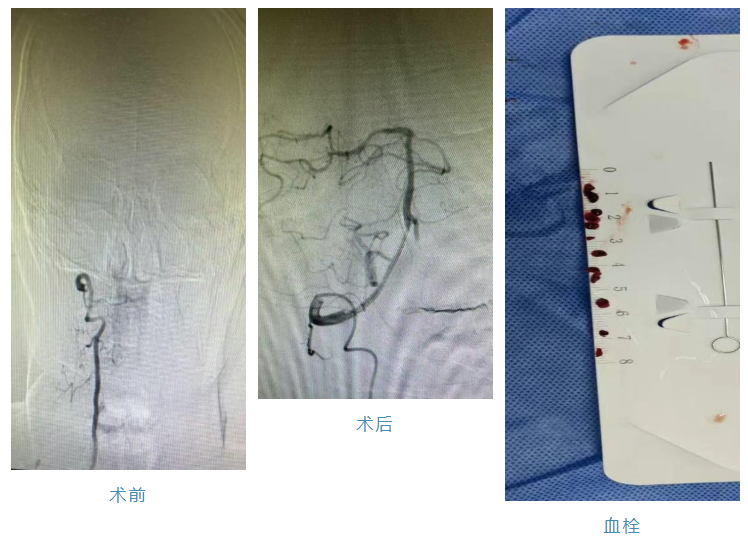 病历3:患者67岁男性,因“头晕、走路不稳2小时”入院,完善颅脑CT未见出血,急诊值班医师与患者家属沟通病情后给予静脉溶栓治疗,同时完善颅脑MR+MRA检查,MRA提示椎基底动脉未见明显显影,邀请神经内三科会诊,张松副主任查看患者后结合患者今年5月份在我院的MRA检查,考虑为大血管闭塞,症状有继续加重的可能,与患者家属充分沟通病情后行急诊脑血管造影检查显示双侧椎动脉V4段闭塞,行急诊取栓术,术后患者完全恢复正常。