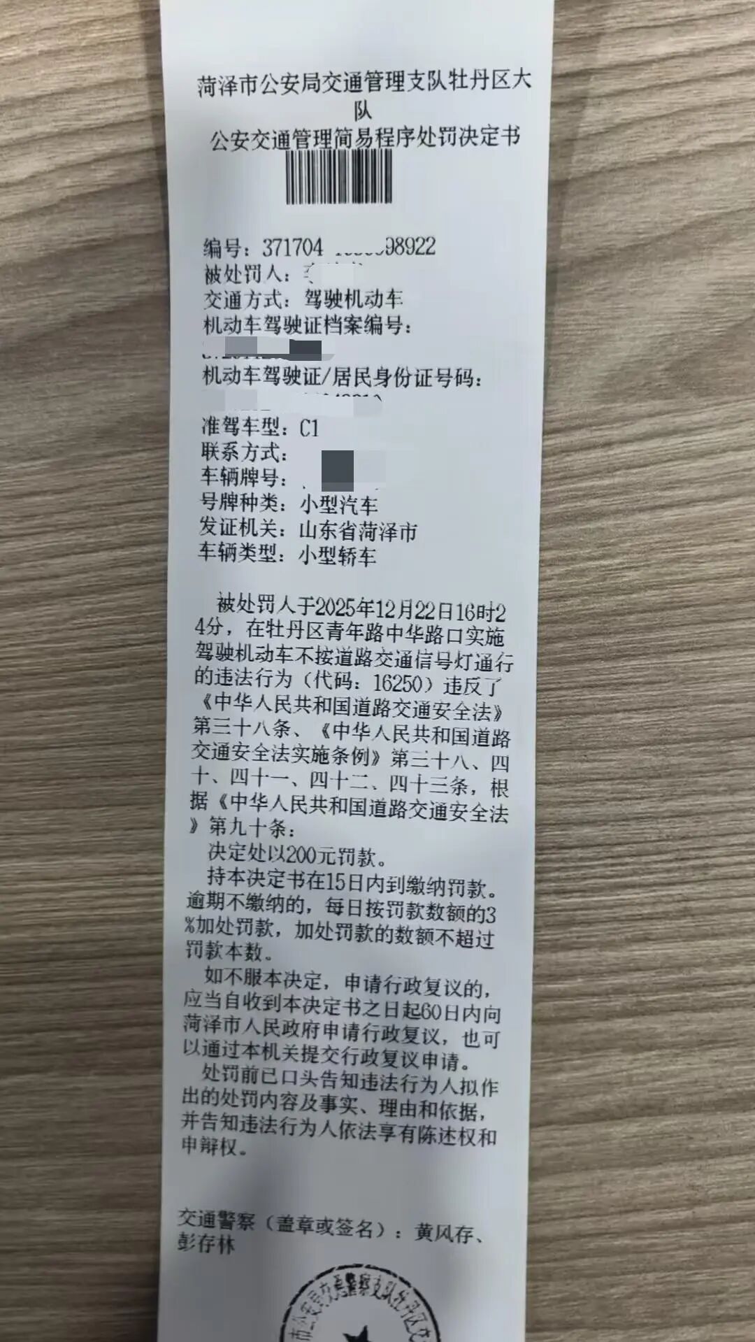 菏泽牡丹交警:绿灯故意“压灯”不走?太过分!举报收到已处罚!
