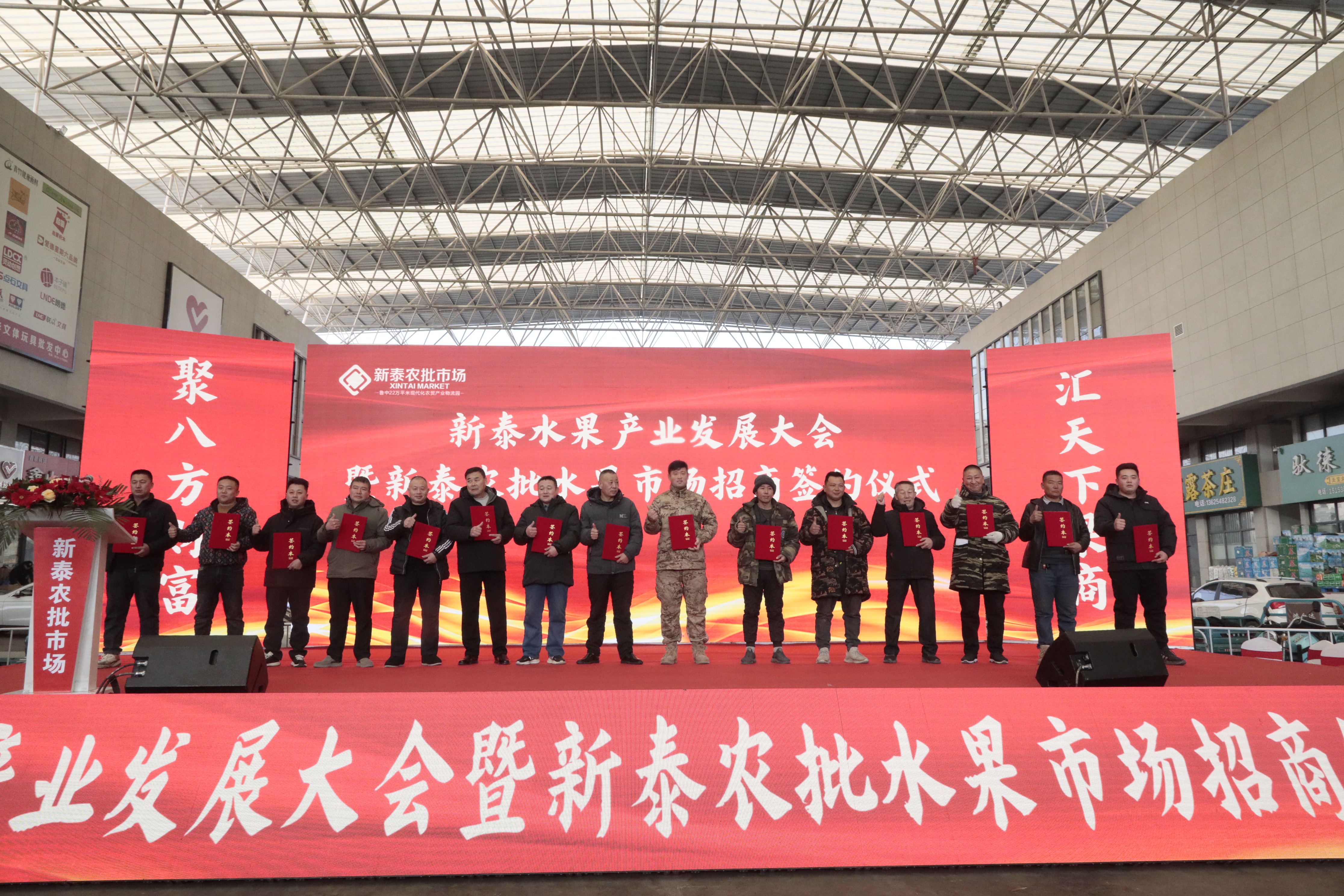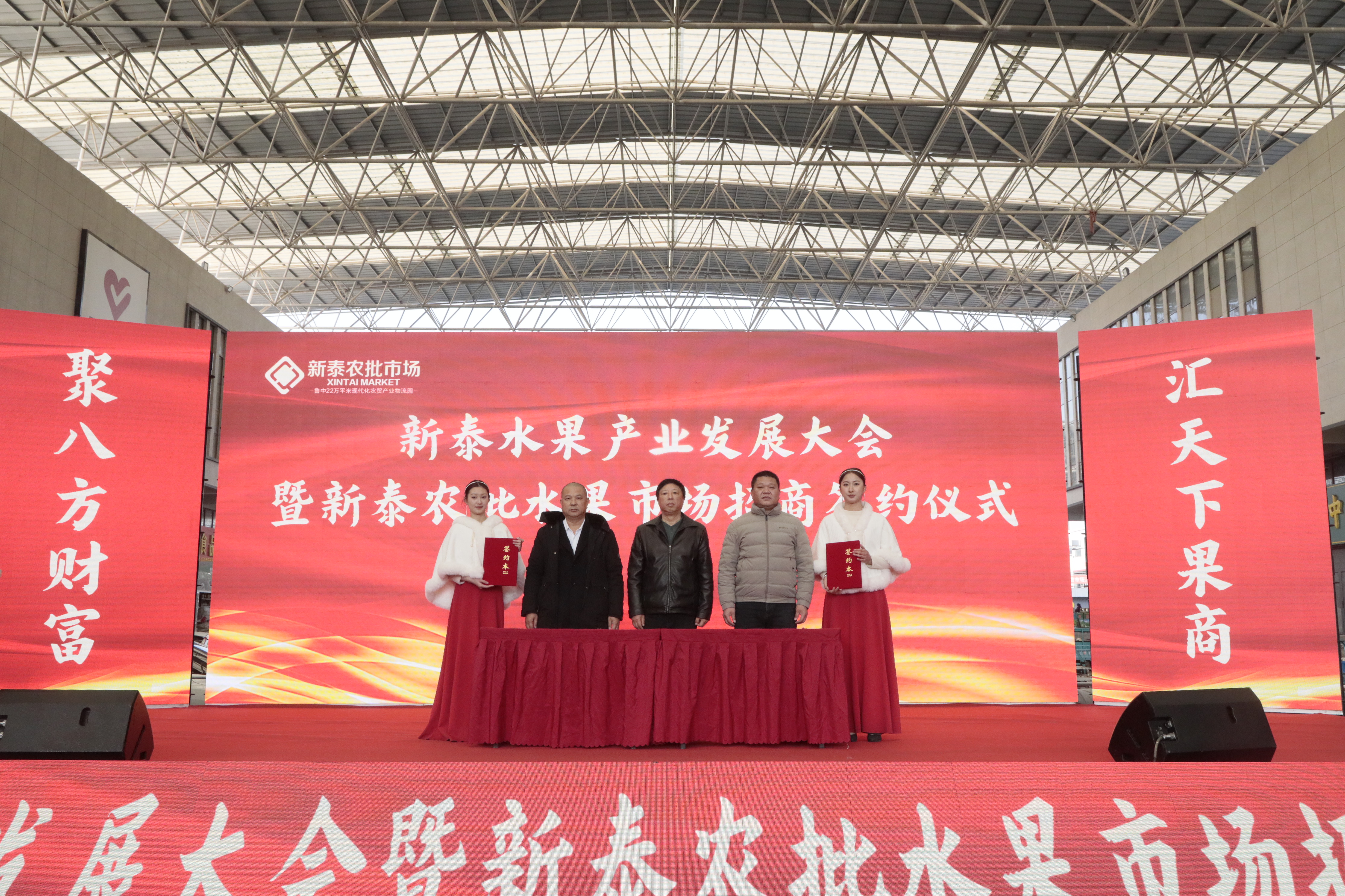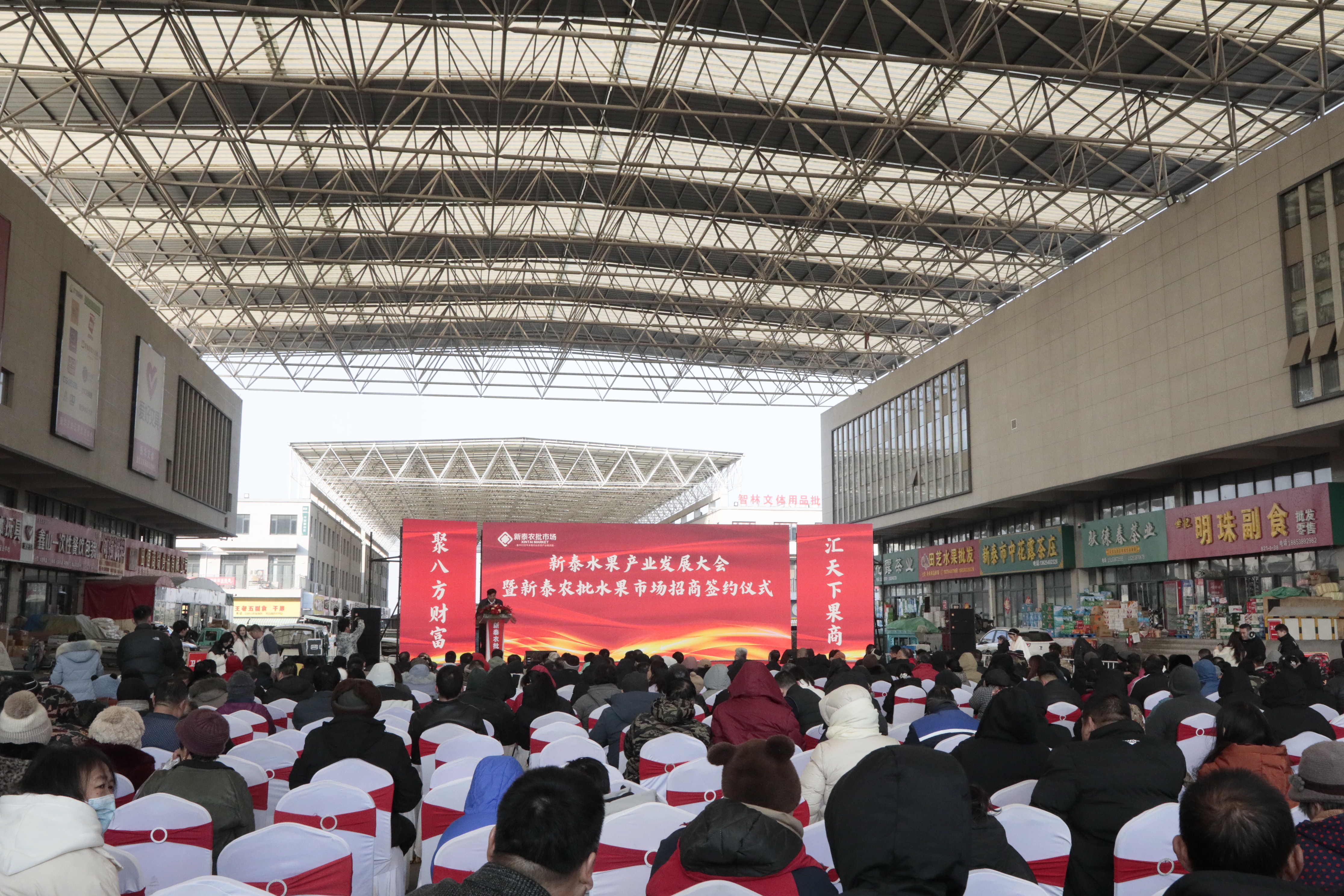 12月27日,新泰农批市场内人头攒动、氛围热烈,新泰水果产业发展大会暨新泰农批水果招商签约仪式在这里隆重举行。此次活动以“果”为媒,搭建合作桥梁,为新泰水果产业提质升级、区域经济高质量发展注入了新动力。