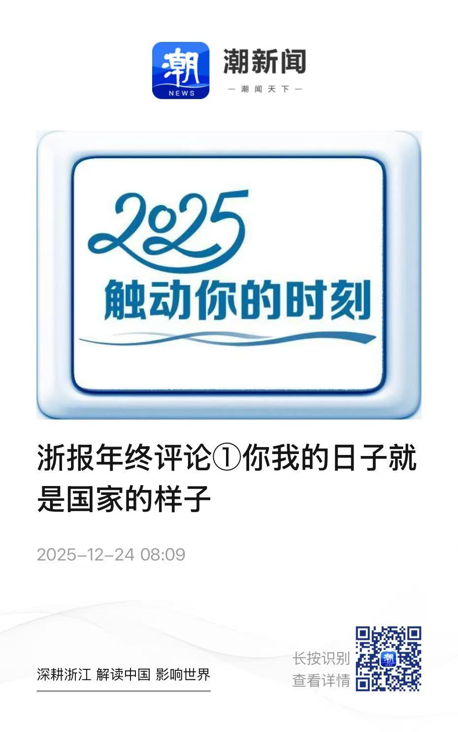 浙江日报:《浙报年终评论①你我的日子就是国家的样子》