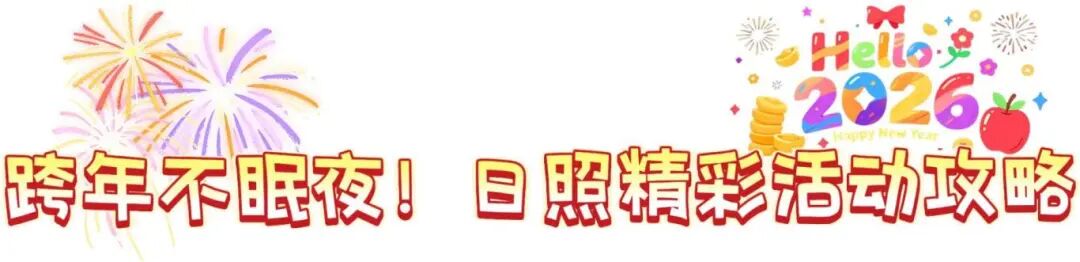 活动内容:辞旧迎新的瞬间在日照来赴一场特别的跨年夜吧——2026初光青春·跨年嘉年华来啦!现场设有日照非遗展、二次元国漫展、篝火晚会、孔明灯许愿、寻宝活动、国潮艺术展。一起告别2025,迎接2026!