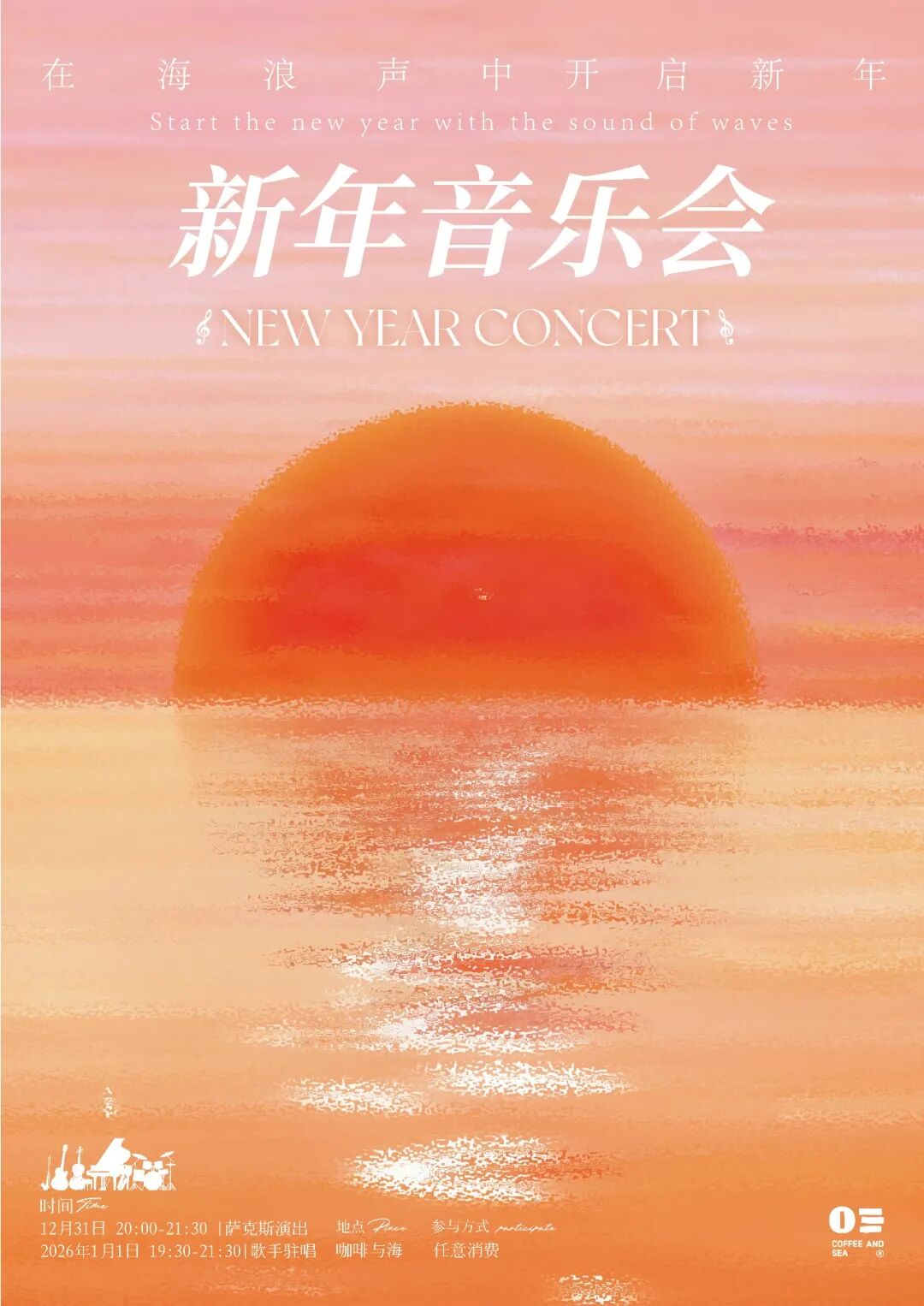 活动内容:窗外,潮声轻轻起伏,窗内,旋律流转萦绕。迎着海风,赴一场海边的跨年音乐之旅,感受音乐给予的温暖慰藉,定格新年这一美好的时刻。