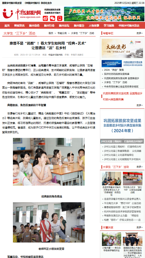此次获评全国优秀团队,是对威职实践育人工作的再次肯定。学校将持续深化“普通话+”育人品牌建设,推动社会实践与专业教育深度融合,努力培养更多有理想、敢担当、能吃苦、肯奋斗的新时代青年,为服务乡村振兴、助力民族复兴贡献更大力量。