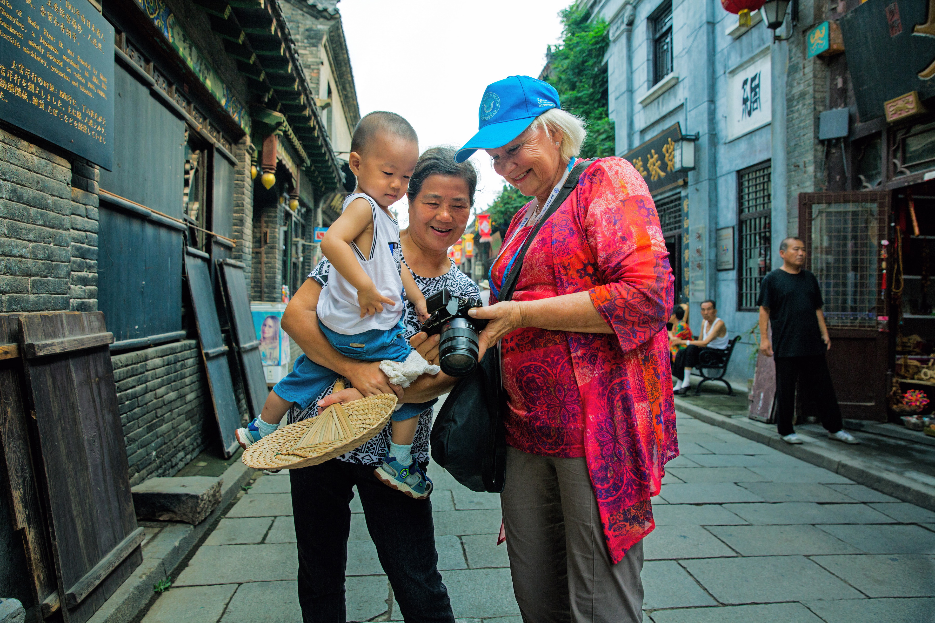 作品拍摄于周村古城,记录了一位国际友人与古街居民热情交流的情景。常玉摄点击报送作品>>>专题|“大美山东”主题活动