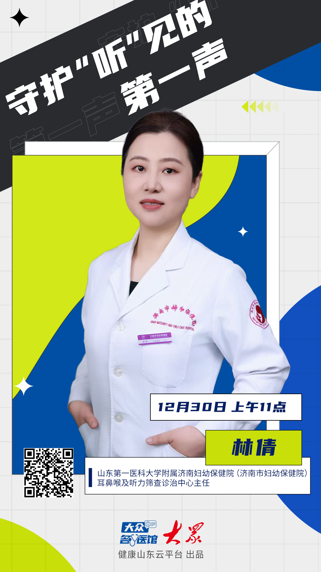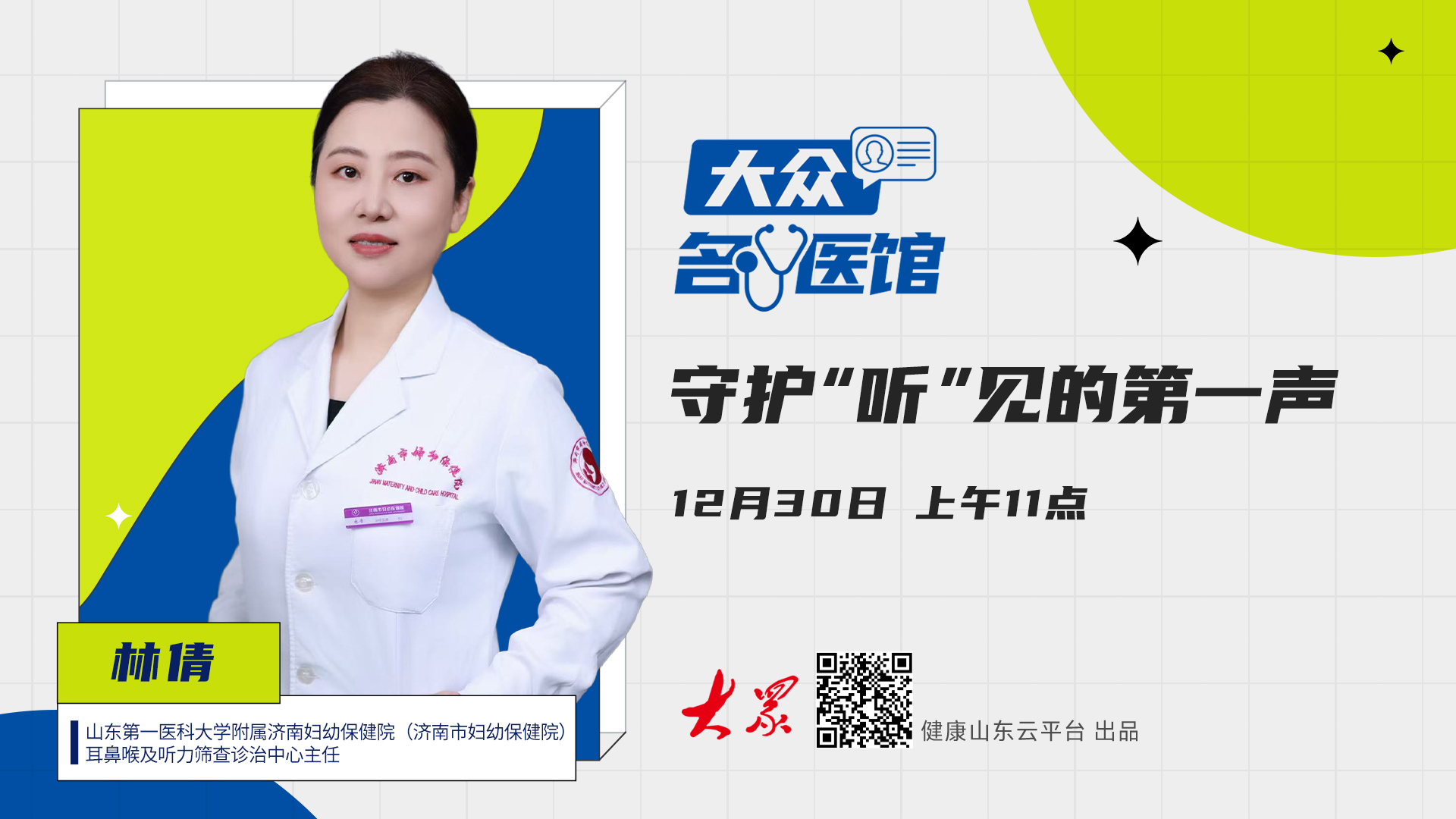 12月30日上午11点,《大众名医馆》邀请到山东第一医科大学附属济南妇幼保健院(济南市妇幼保健院)耳鼻喉及听力筛查诊治中心主任林倩,为我们解读儿童听力筛查与语言发育的奥秘。