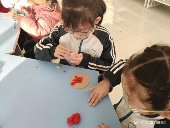 孩子们对这份“指尖上的乐趣”充满热情,纷纷动手实践。虽然手上沾满了面团,但孩子们脸上都洋溢着专注与喜悦。经过一番创作,一个个色彩鲜艳的面塑中国结新鲜出炉。