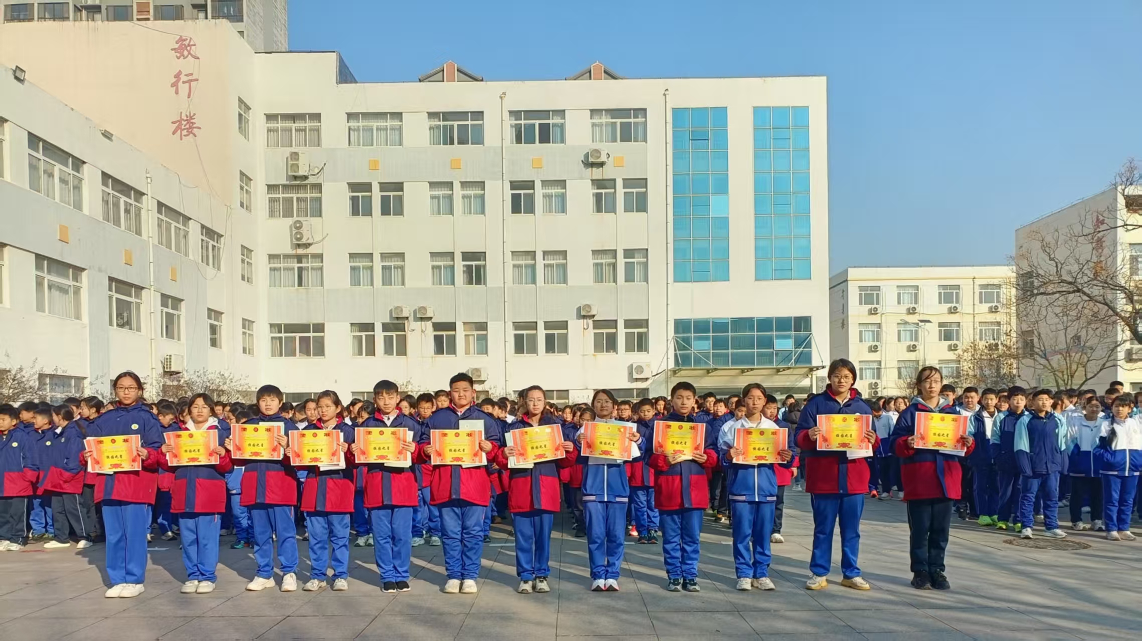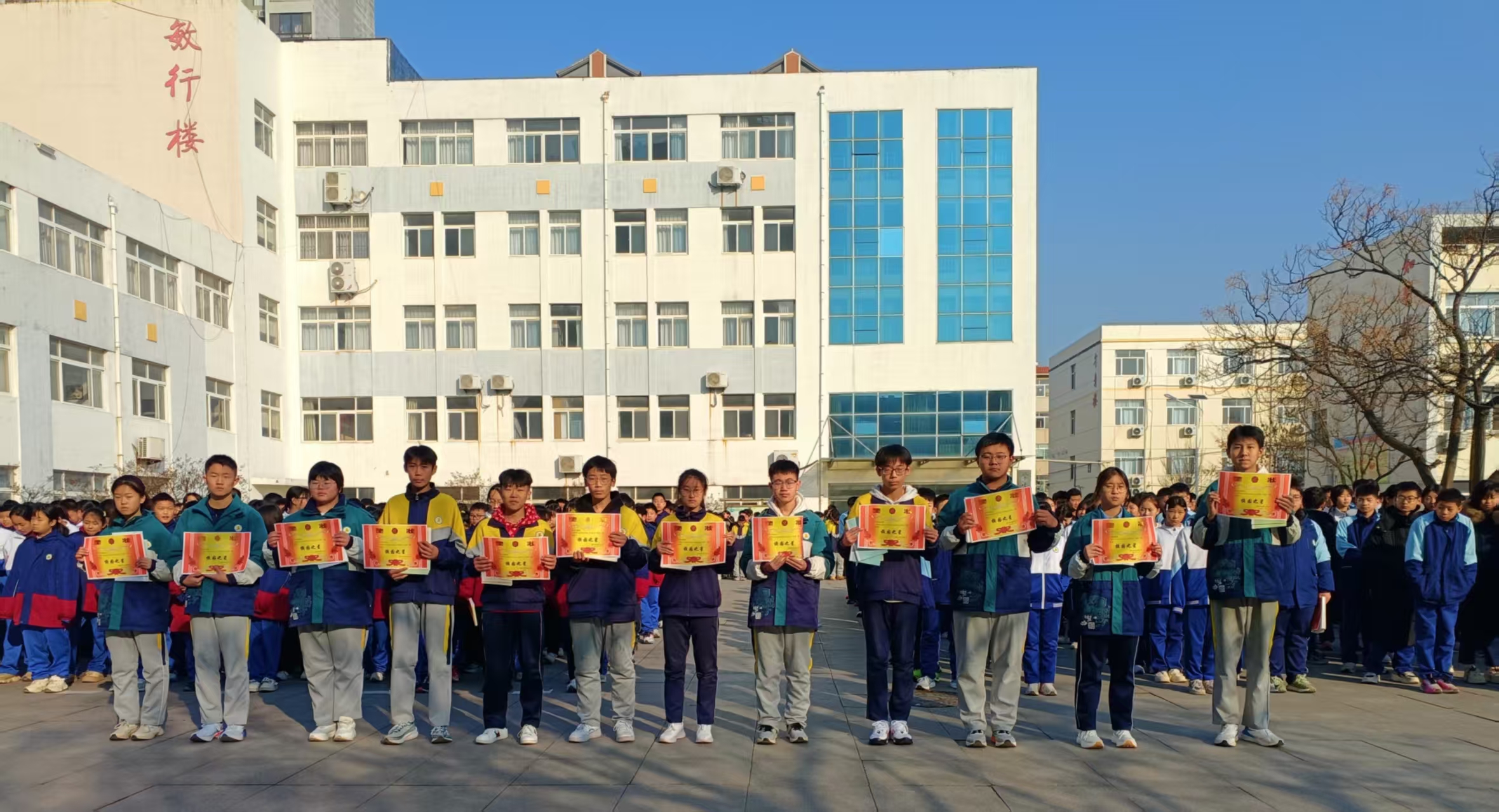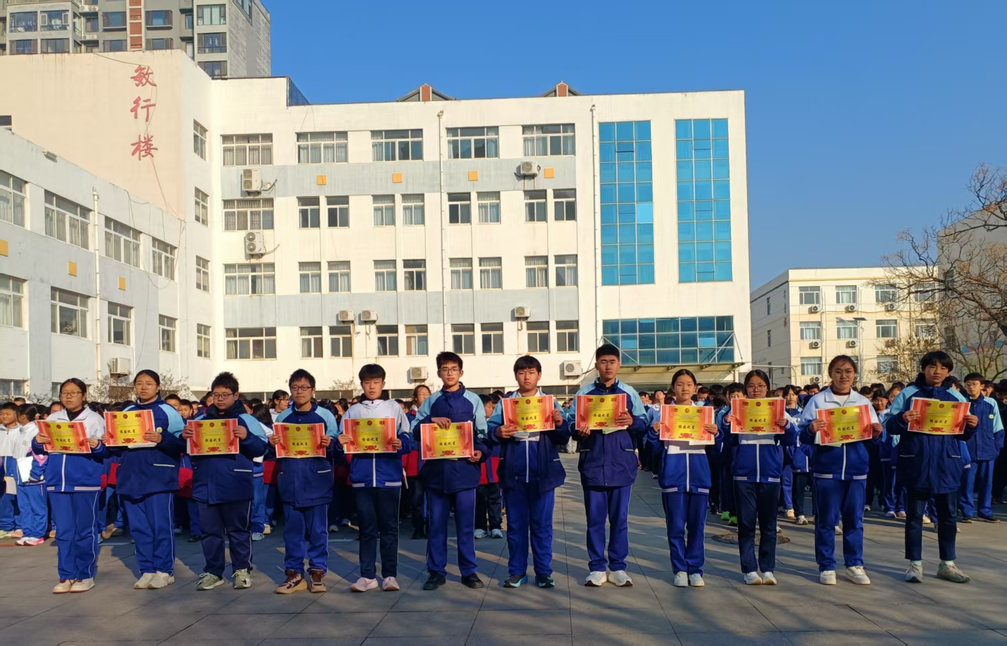 12月29日,滨州市惠民县孙武街道中学迎来了一次特别的升旗仪式。在第一缕晨光中,伴随着铿锵有力的国歌旋律,第四届“校园之星”颁奖仪式隆重举行。学校特别为36名获评“校园之星”的同学颁发荣誉,以此表彰先进典型,深化“五育融合”教育理念,助力学生核心素养的全面提升。