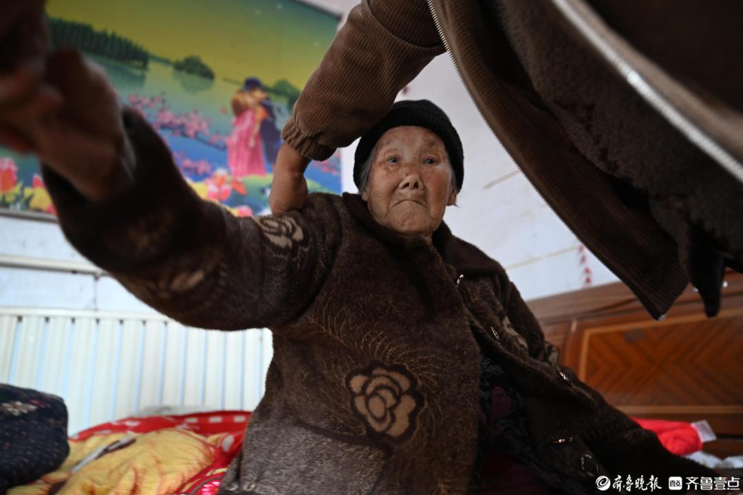 出生于1924年的杨桂英祖籍肥城,年轻时嫁到了平阴,跟着丈夫在生产队里种地。“母亲是小脚,其实也没怎么干过重活儿。”小儿子回忆道,“母亲年轻时是个很有主见的人,现在虽然年龄大了,但是性格没有变。”杨桂英和老伴育有四个儿女,三个儿子一个女儿。老伴去世后,杨桂英就一直跟着小儿子生活。“和我们一起生活了43年了。”小儿媳妇说,“我的两个孩子都是奶奶看大的,和奶奶可亲了。”杨桂英手巧,经常给孙子们做衣裳,做得好看又合体,引得邻居们都夸,她也毫不吝啬地给邻居家的孩子们做几身。