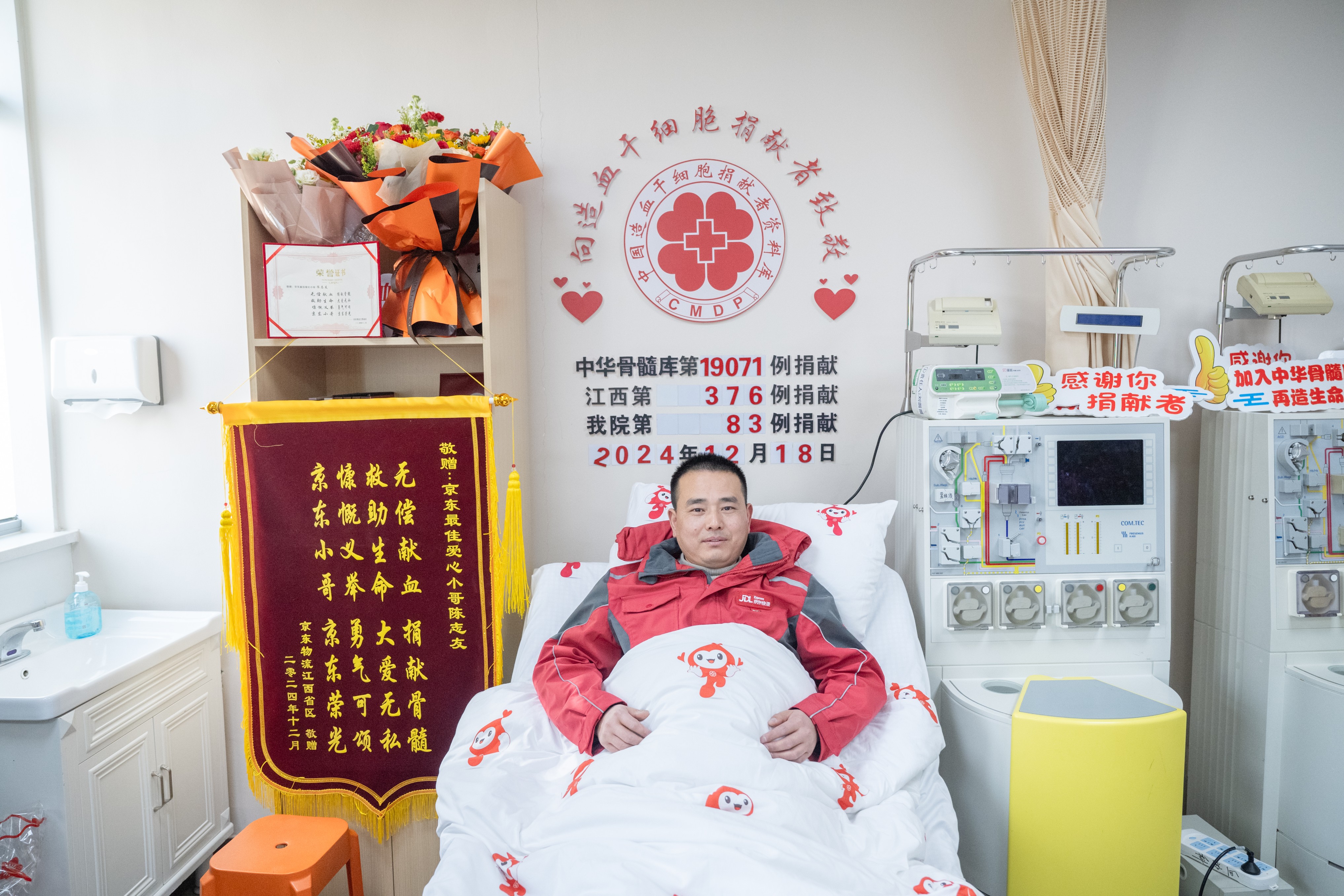 据了解,陈志友是鹰潭市余江区一名快递员,每日往返于三个乡镇,行程百余公里。公示信息显示:他自2012年起参与无偿献血,至今已坚持13年,累计献血46次,2014年登记加入中华骨髓库。10年后,接到红十字会配型成功通知,他毫不犹豫地同意,并于2024年12月完成造血干细胞捐献,为一名患者送去了“生命包裹”。