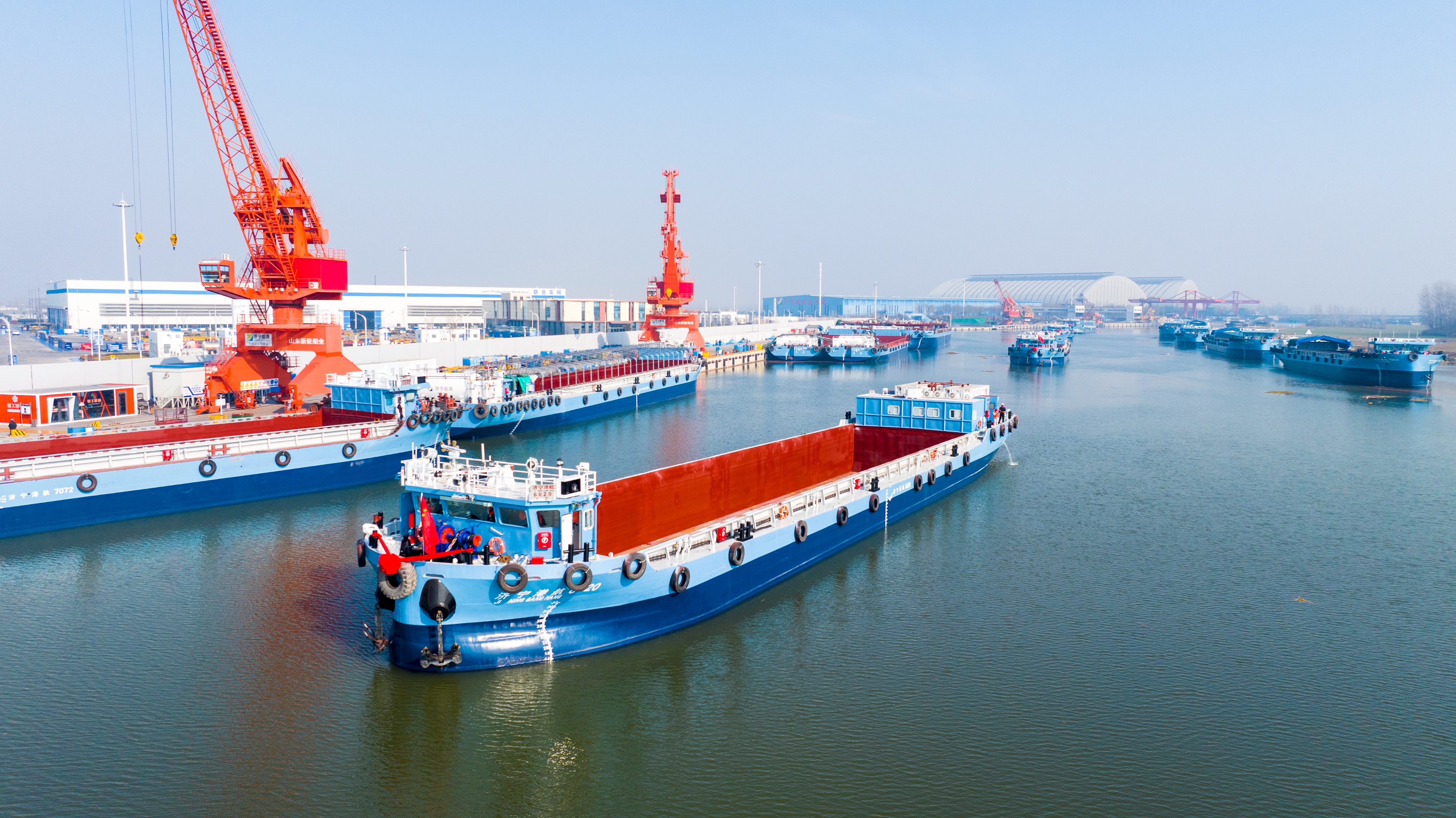 山东新能船业有限公司董事长张强介绍:“本次仪式交付的首批5艘67.6米长的多用途电船及新签订的50艘纯电动力船,将全部投入京杭运河流域,成为常态化、规模化运输的纯电动货船绿色航线,覆盖长三角至华北核心物流通道,有助于推动京杭运河变身‘绿色水道’。”