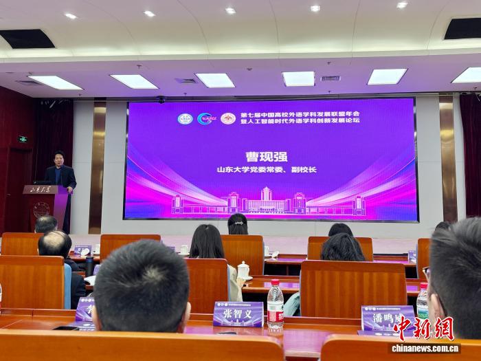 山东大学党委常委、副校长曹现强在致辞中表示,近年来,学校顺应人工智能发展趋势,深化新文科建设,创新“外语+”复合培养模式,现已开设英法、英政双学位项目,建设多语数字实验室、语言与心理健康研究中心。未来,学校将打造“外语+AI+区域国别”发展路径、创新人才培养模式,推动科研成果向现实生产力转化。