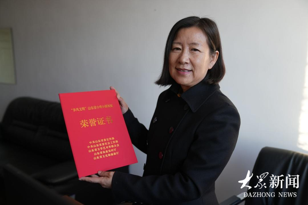 莒南县文化馆副馆长、莒南县小戏小剧创演工作室负责人徐芳展示近期获得的荣誉证书。