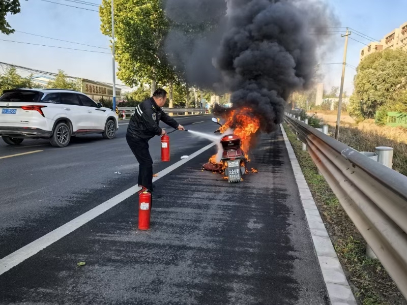 12月23日,江志帅驾驶鲁BR0339校车执行任务途中,行至蓝鳌路龙山华府附近时,突遇一辆电动车发生自燃。面对突发险情,他第一时间将校车安全停靠,确保车上学生安全,不顾个人安危,果断拎起车载灭火器冲向起火车辆。凭借日常训练掌握的消防技能和沉着冷静的心态,他迅速将火势扑灭,有效避免了更大损失,随后默默返回岗位继续工作。
