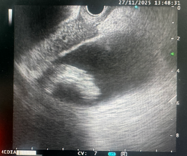 手术团队在超声内镜的实时引导下,于十二指肠球部与胆囊之间建立微创引流通道,并置入支架。该操作经自然腔道进行,无需开腹,创伤小。术中成功引流脓液,患者症状迅速缓解,为后续处理巨大结石创造了条件。