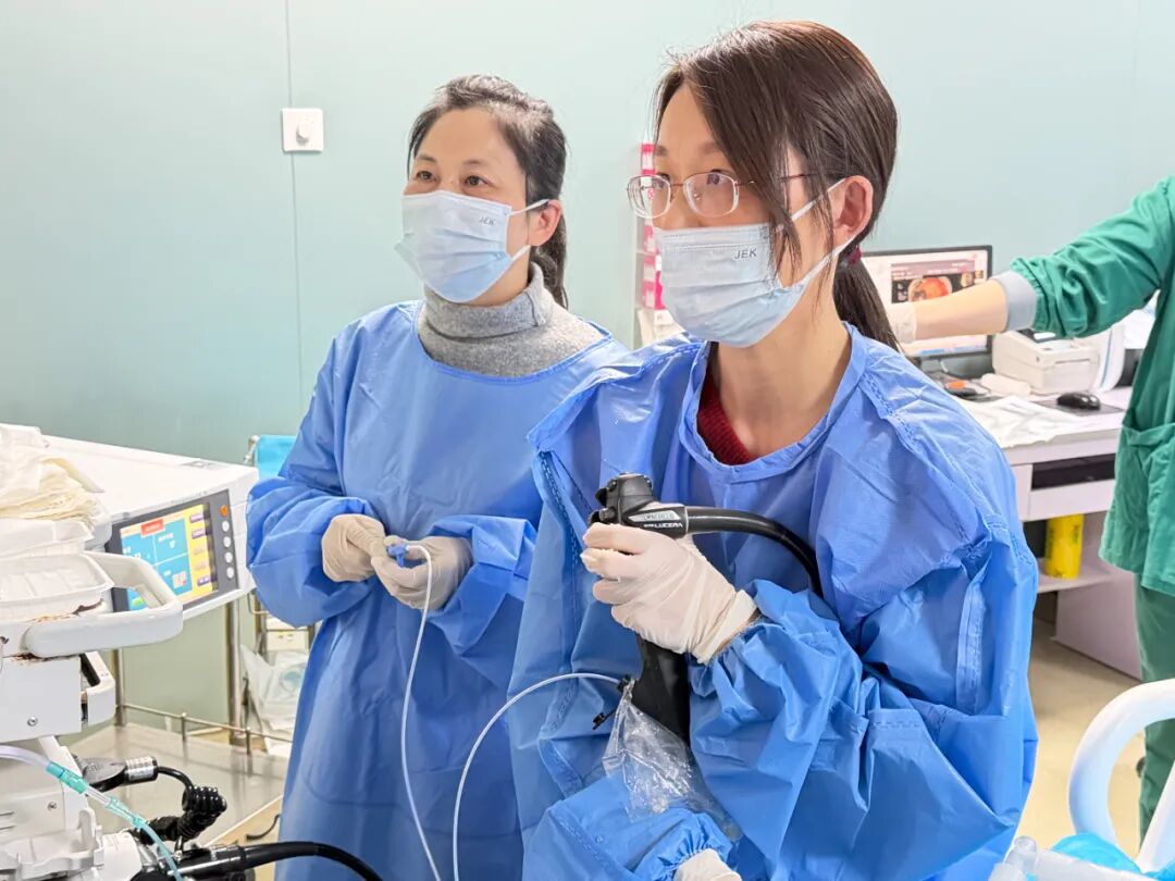 在党委委员、副院长、消化学科带头人袁海鹏教授的统筹指导及麻醉科的配合下,由肝胆胰腺内科副主任医师李金厚主刀,为患者分两阶段实施内镜手术: