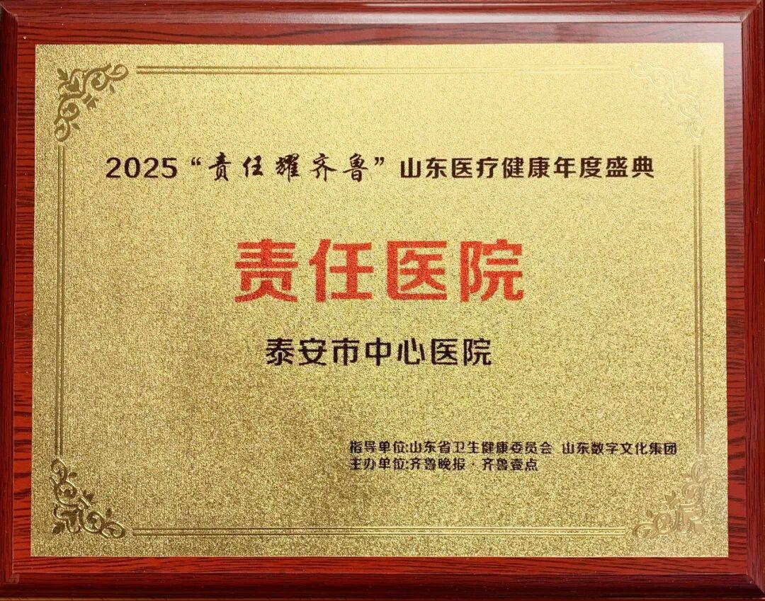 泰安市中心医院荣膺2025“责任耀齐鲁”年度责任医院