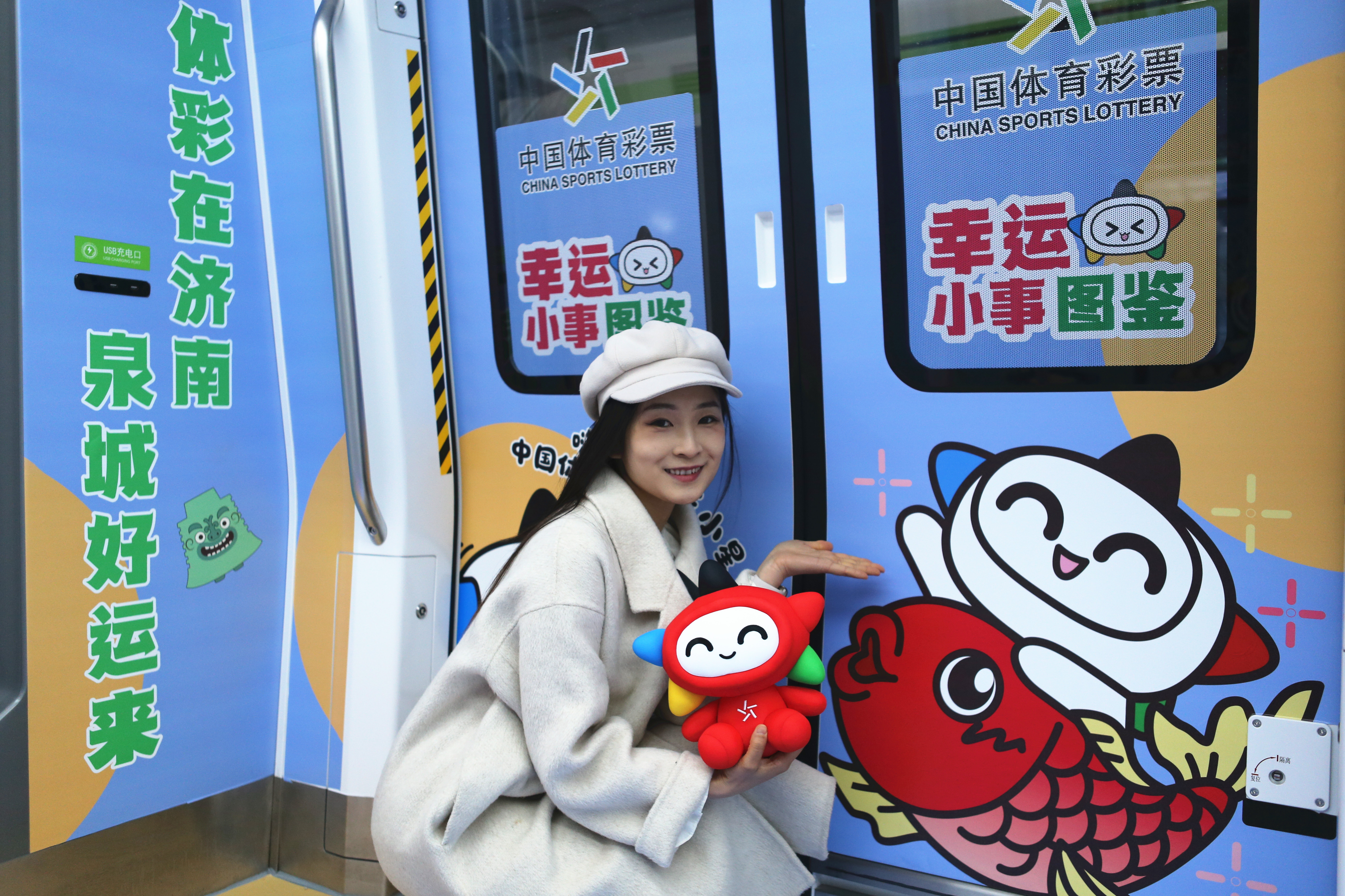 济南市民期待已久的地铁4号线于12月27日上午10时15分正式开通。其中,6节特色车厢一亮相便成为乘客争相打卡的“网红地”。这里不仅好看、好拍,幸运浓度也超高——这便是济南地铁4号线的体彩专列。让我们紧随中国体育彩票的吉祥物“乐小星”的脚步,一同探秘这座刷屏朋友圈的“移动幸运空间”。