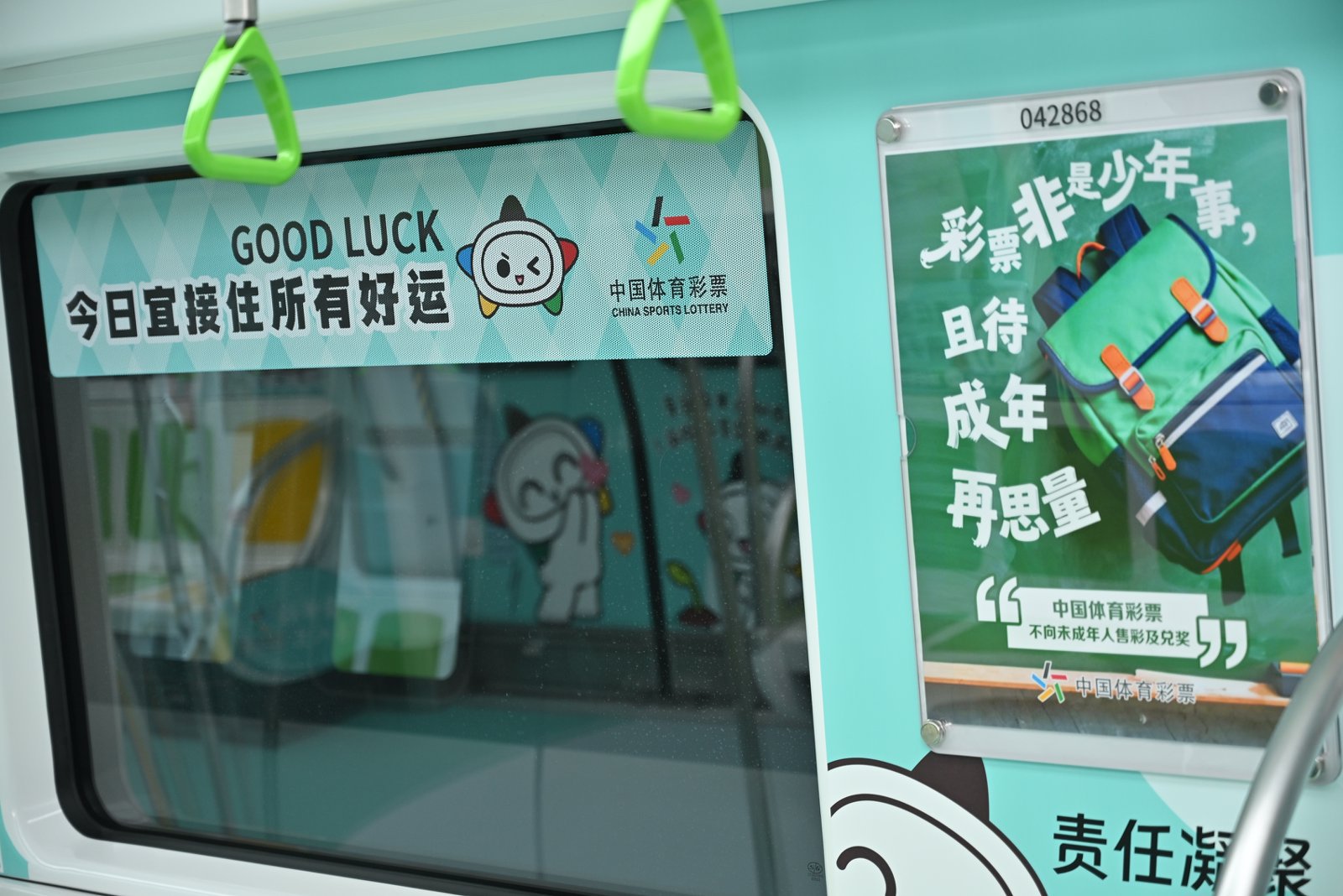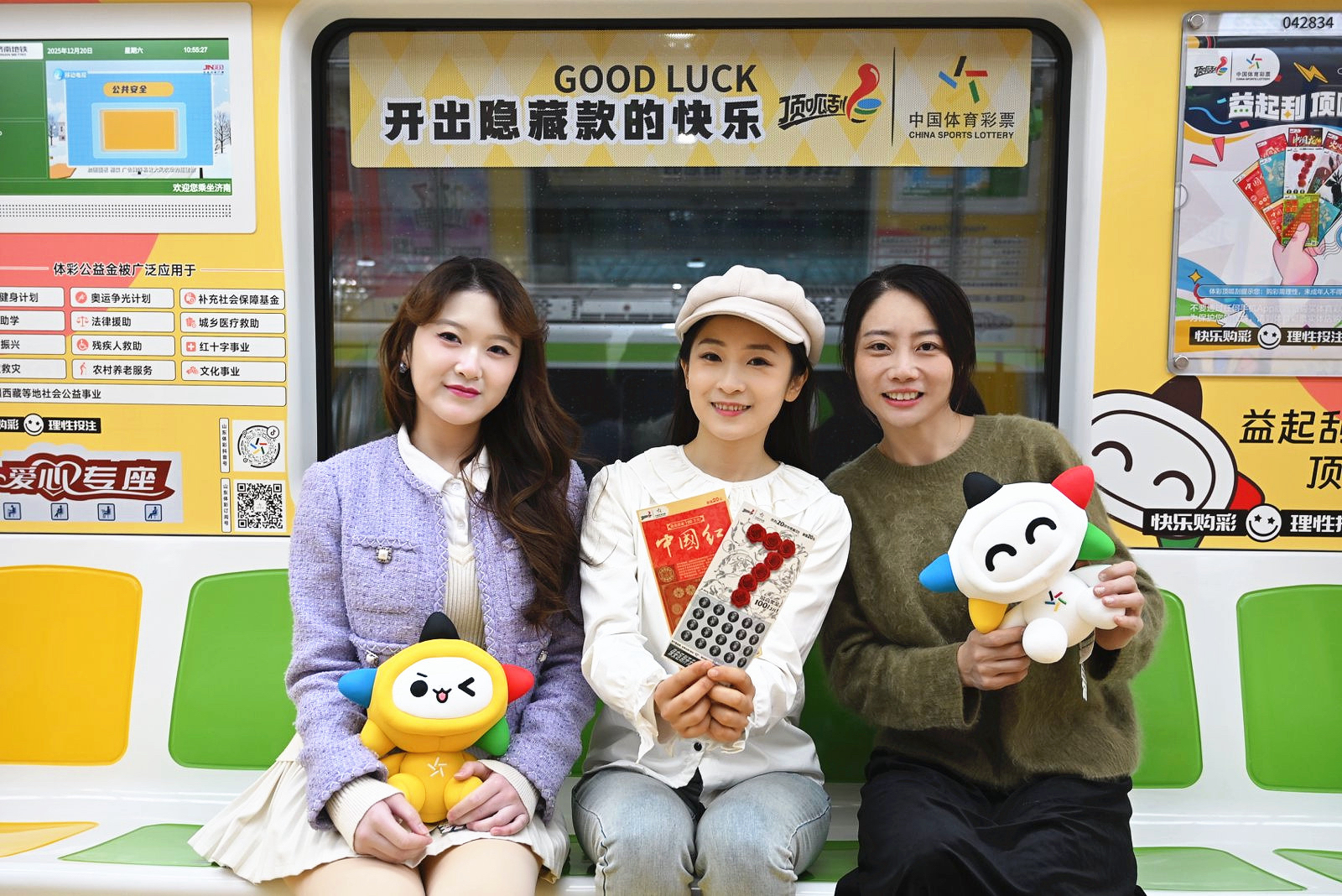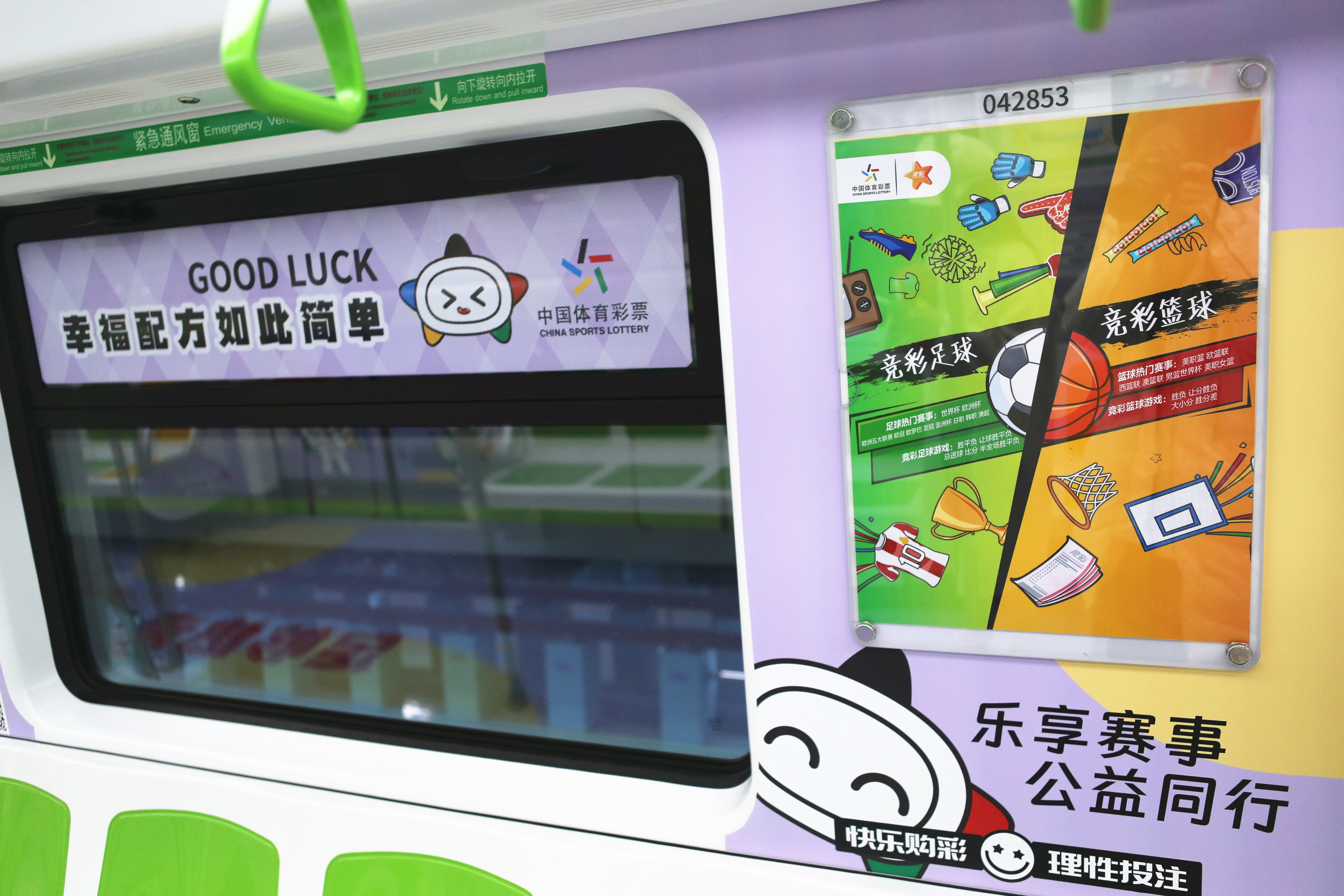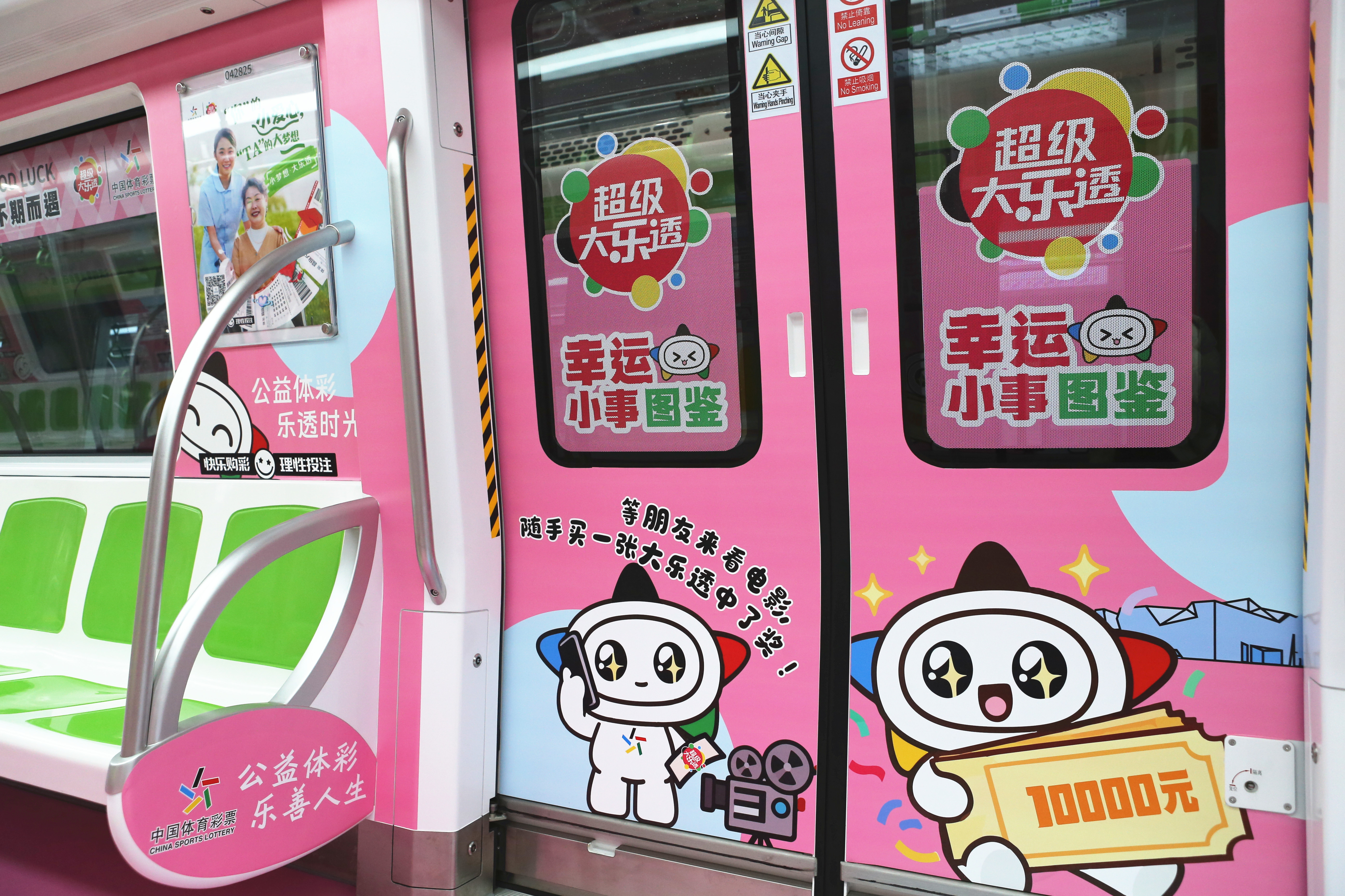 六节车厢自成天地,让每一段旅程都充满寻常又别样的欢喜。体彩品牌主题车厢内,体彩元素与“乐小星”的萌态交相辉映,“公益体彩 乐善人生”的理念随列车前行,悄然在乘客心中播下公益的种子。责任彩票主题车厢中,设计吸睛的海报与“快乐购彩 理性投注”的醒目标语,让体育彩票的责任担当深入人心。公益金主题车厢里,化身运动达人的“乐小星”在体彩公益金支持的场馆内活力运动,以漫画形式生动诠释体育彩票“来之于民 用之于民”的发行宗旨,让乘客在会心一笑间感受公益的温暖力量。