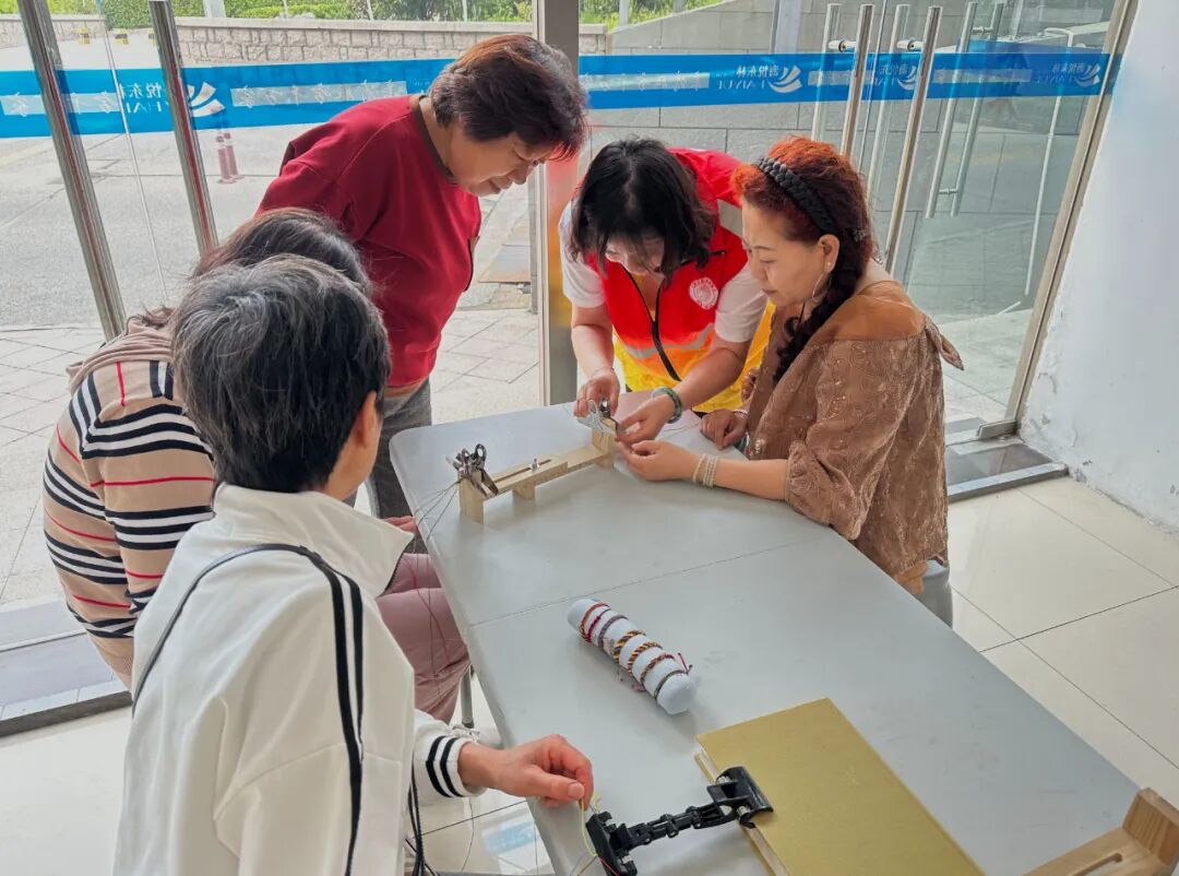 鲁信长春社区的缠花达人们则以丝线为墨,在方寸扇面勾勒出细腻纹样,让非遗技艺在居民指尖传承生辉,吸引了越来越多居民前往学习;蓝岸馨苑社区邀请曾获“山东省优秀企业家”荣誉的退休党员李立先分享奋斗事迹,以实干精神激励新一代;石岭路社区的田树人用他深沉的嗓音和专业素养,带领社区朗诵爱好者品味经典、传递时代强音;秦岭路社区的王彩梅,则通过一根根编绳,串联起邻里情感,教居民编出生活之美;康城社区的李尚孔以太极会友,十余年风雨无阻志愿教学,将刚柔并济的哲学融入居民日常,引领众人颐养身心、和谐邻里;青大麦岛社区的李艳英则以温暖家风为范,生动讲述美德故事,引导居民传承优良家风、涵养文明新风……这些活跃在社区的银发长者,正以其精湛技艺唤醒共同的社区记忆,更以深厚的人生阅历涵养着社区的文化气质,成为基层治理中一道别样温暖的风景。