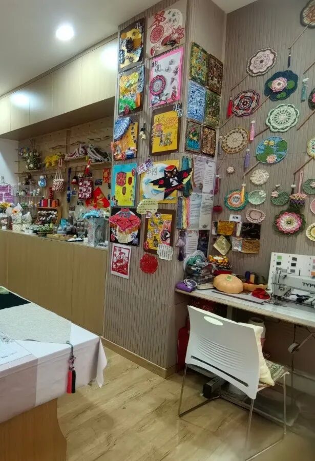 惠都社区将社区内一闲置拐角处,打造成了雅致的“公共文化客厅”。这里陈列着居民创作的各类手工艺品,成了居民日常打卡的“网红地”和联结邻里情感的精神栖息地。