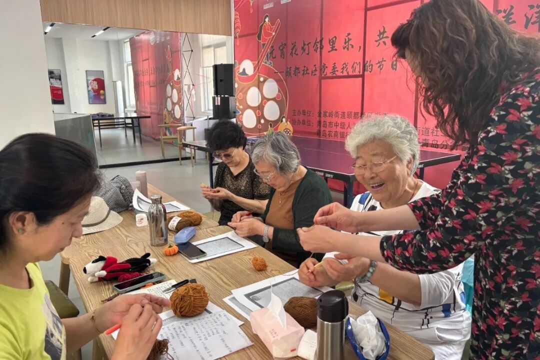 每周三下午,颐都社区的活动室里总是格外热闹。十几位居民围坐在一起,手中钩针翻飞,毛线在指尖缠绕。这不是普通的编织课,而是一场“手艺新生”的实践。他们在老师的指导下,将传统钩织技艺与国庆、中秋等主题结合,创作出月饼、小兔子等钩织作品,既传统又时尚。