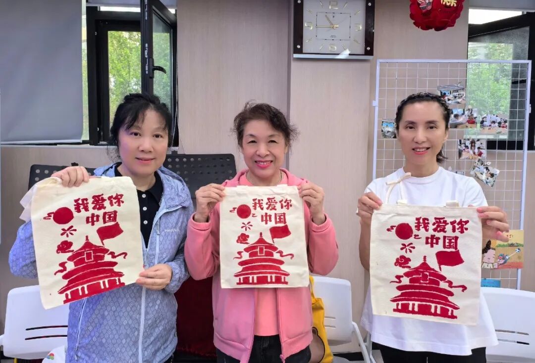 在午山社区和泰都社区,这样的创新实践同样如火如荼。午山社区组织居民制作崂山云海小夜灯,将传统节俗与社区共建理念融于手作之中;泰都社区举办的“欢度国庆·巧手绘包”活动中,居民们在帆布包上绘制“我爱你中国”主题图案,表达对祖国的深情祝福。