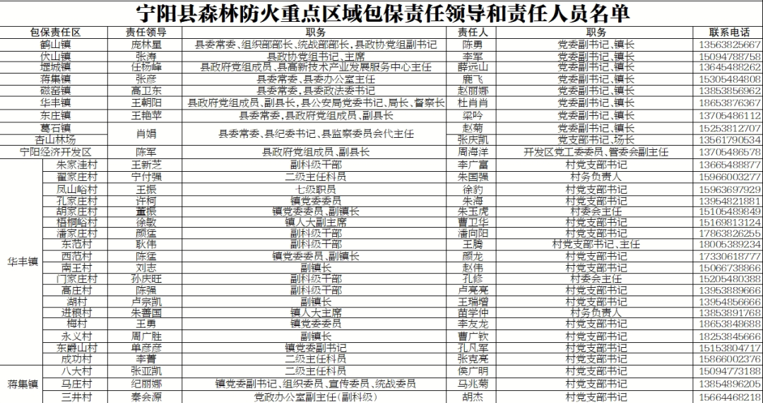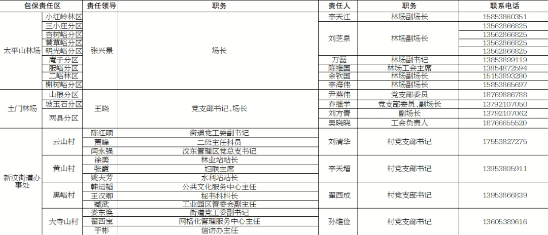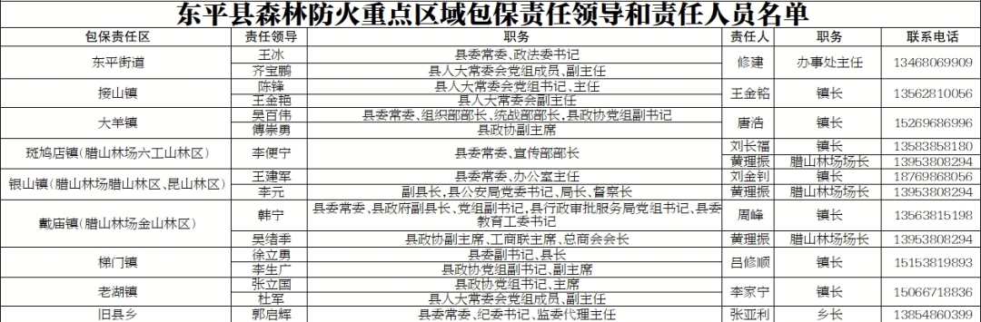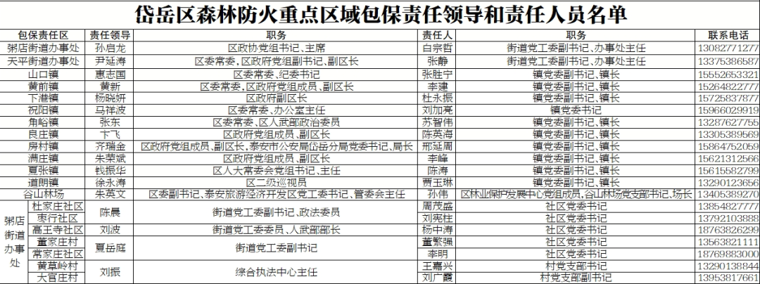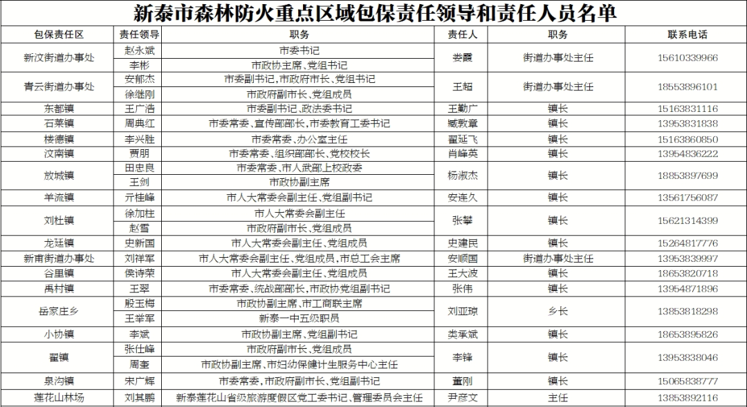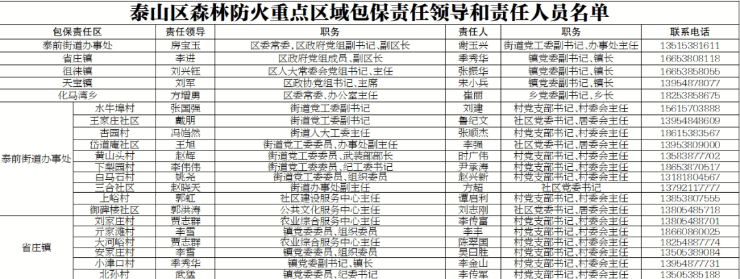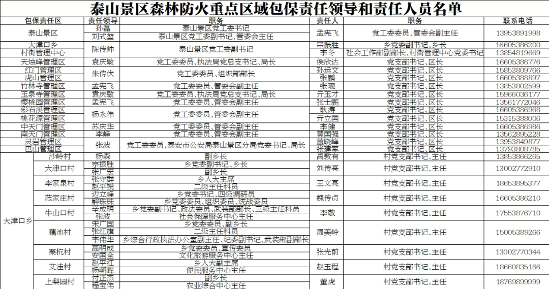 泰安发布全市森林防火重点区域包保责任领导和责任人员名单
