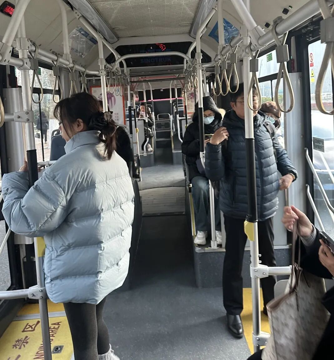 早8点16分,从地铁汉峪金谷站上车西行,K115路公交车上空座不少。 记者 郭延冉摄