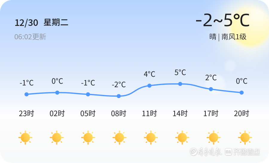 今天是2025年12月30日,农历十一月十一,东营市迎来晴朗的一天。当前温度为-1.2℃,天气晴朗,风向为南风1级,空气湿度为94%。PM2.5浓度为63,属于良好水平,适合市民户外活动。但由于早晨气温较低,建议市民出行时注意保暖,避免着凉。