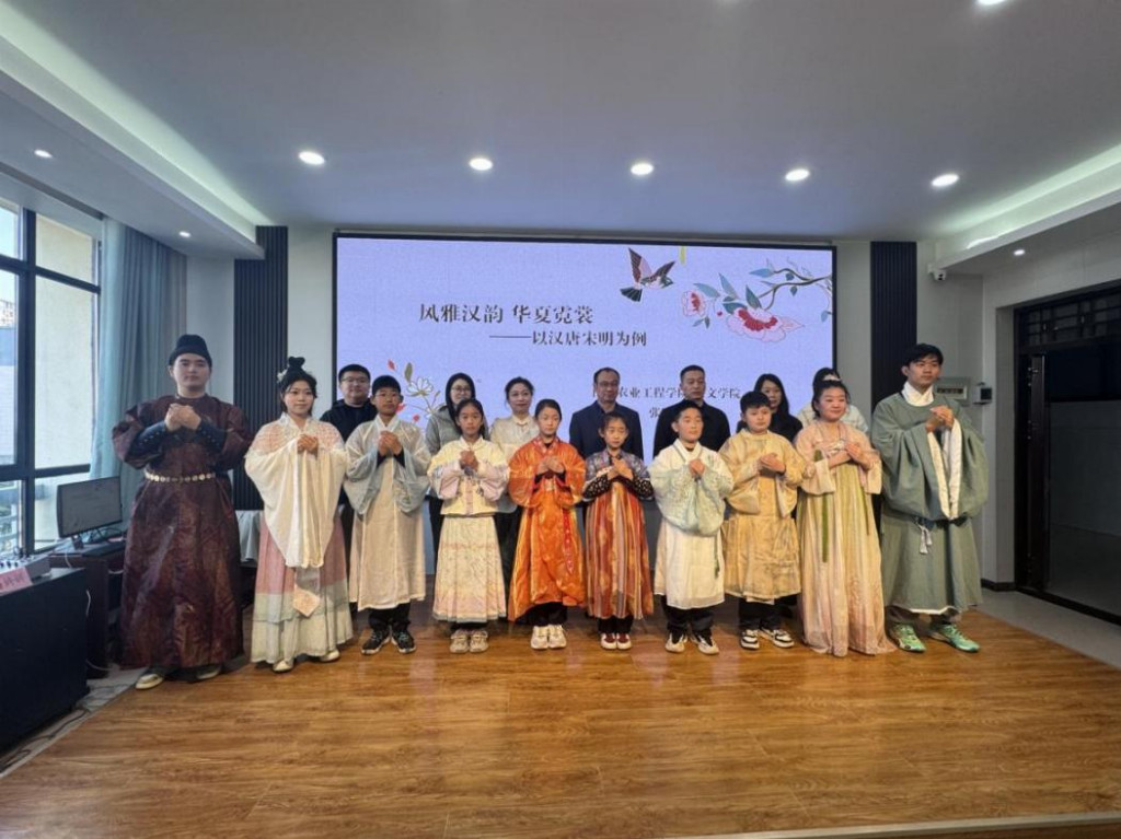 近日,山东农业工程学院人文学院组织师生志愿者身着典雅汉服,走进成武县郜城第一实验小学,开展了一场以“二十四节气”为主题的科普活动。本次活动由人文学院党委书记王纪带领三位老师代表及四名志愿者学生代表共同参与。