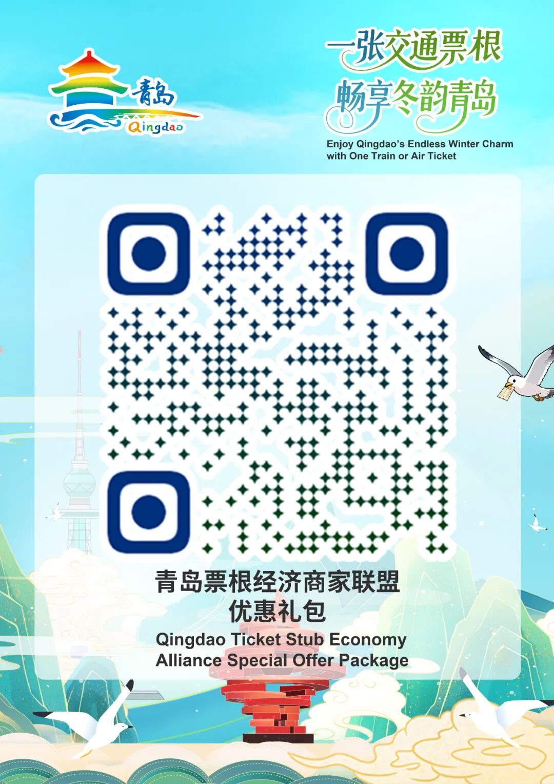 (扫码获取青岛市票根经济商家联盟优惠礼包)
