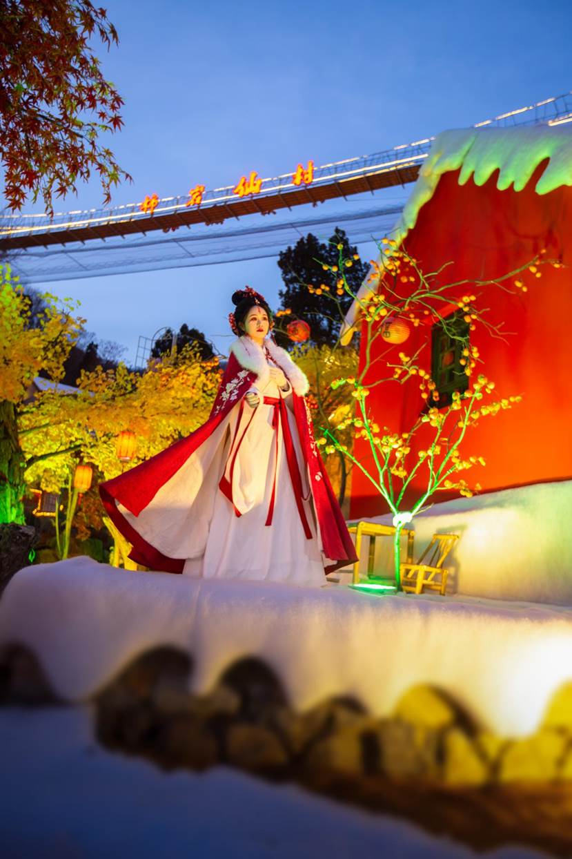 活动期间,景区还将安排多项互动体验。游客可参与“壹元吃逛烟火村”,品尝爆米花、江米糕等怀旧小吃;也可在梅花与雪景布置中,与身着古风服饰的演员互动合影,增添游览的沉浸感。这场跨越古今的邂逅,不仅让拍照打卡充满趣味,更让人沉浸式感受“人在画中游”的古村生活意趣,为跨年之夜添上一笔生动的人文暖色。