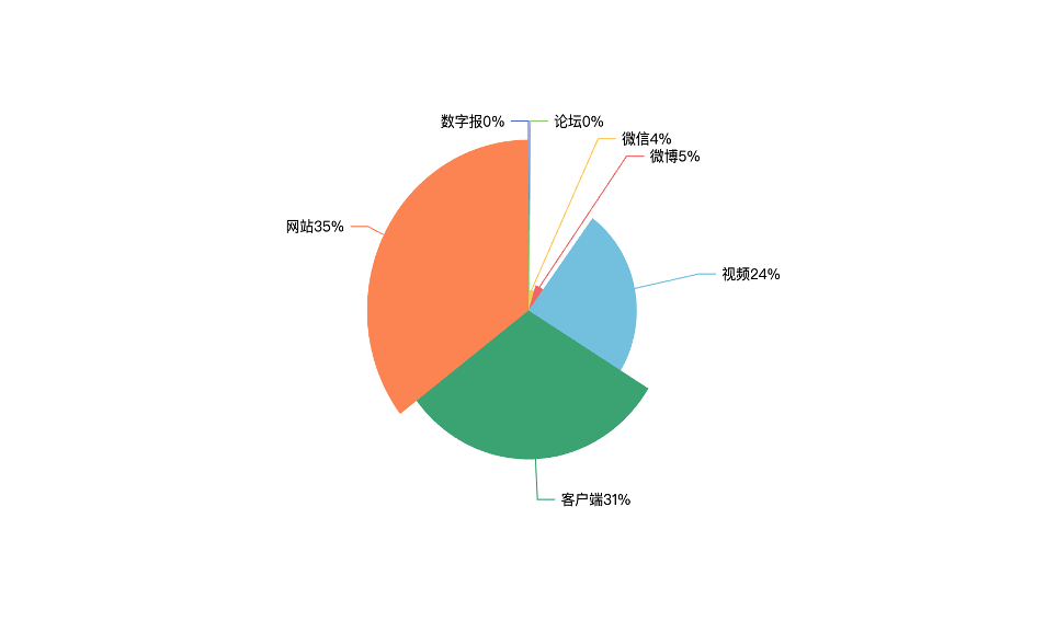 全网1193条传播信息中,来自客户端的信息有368条,来自网站的422条,微博65条,微信51条,视频283条,数字报0条,互动论坛4条。信息传播量最大的渠道是网站。客户端和网站的信息数量占比达66.22%,说明主流媒体在2025中国婴幼儿服务产业博览会的信息传播中起到了重要的推动作用。