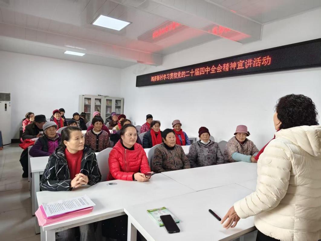 为推动党的二十届四中全会精神在基层落地生根,切实把制度优势转化为社区治理效能,12月29日,济宁高新区接庄街道鸿济新村开展学习贯彻党的二十届四中全会精神宣讲活动。