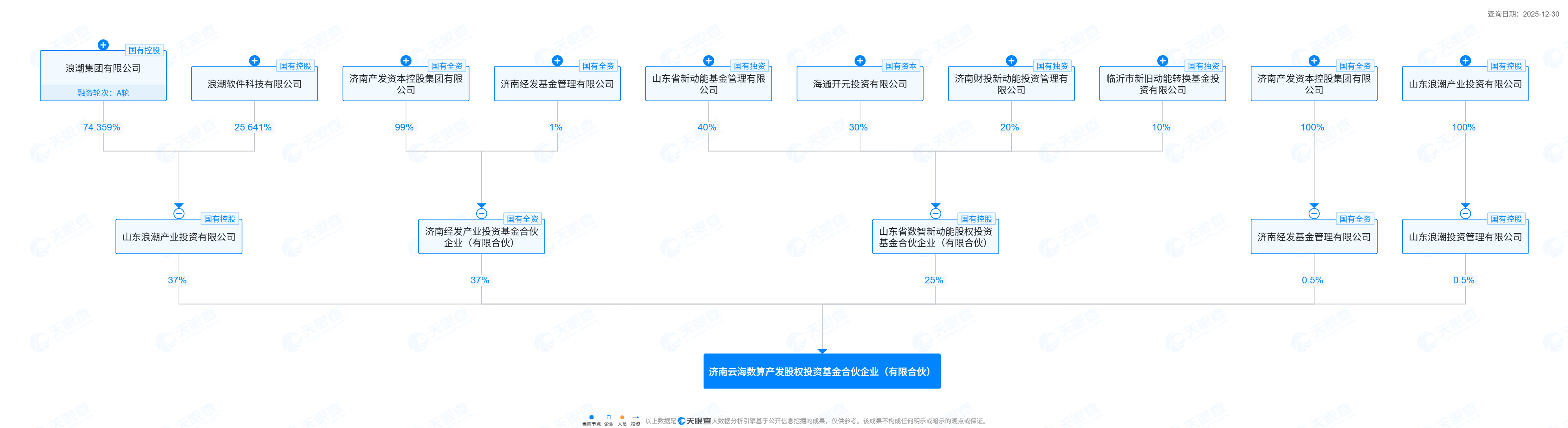 从浪潮产投股权结构看,浪潮集团有限公司持有74.36%的股权,浪潮软件科技有限公司持有25.64%,而后者还是前者的全资子公司。