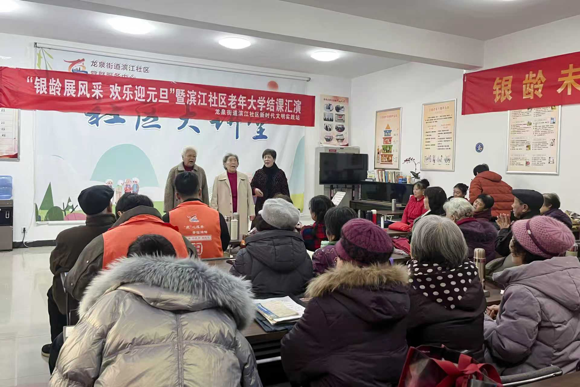 【文化社区·滨彬有礼】滕州龙泉街道滨江社区新时代文明实践站开展“银龄展风采 欢乐迎元旦”暨滨江社区老年大学结课汇演活动