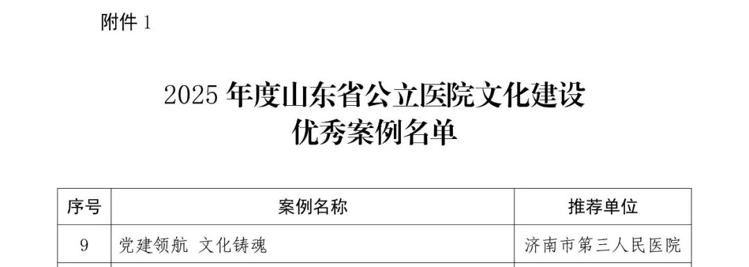 济南市三院获省卫健委2025年山东省公立医院文化建设优秀案例