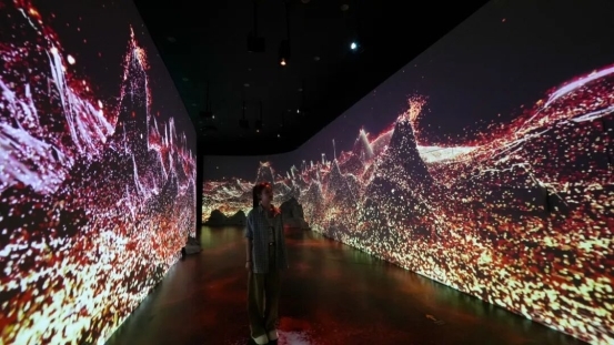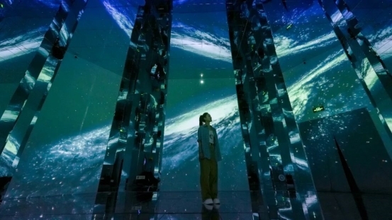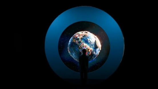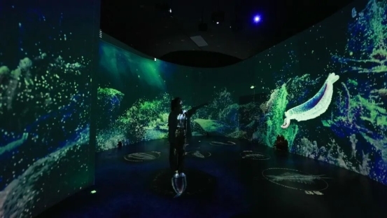 《重返海洋:穿越46亿年的时空旅行》——海洋演化史科学艺术展览由国家海洋博物馆、光盒魔鱼(青岛)数字科技有限公司主办、中国海洋大学海洋科普与文旅产业联合研究中心承办、中国海洋大学水产学院及青岛海洋探索影像研究院提供科学支持,首次站在太空的视角凝视海洋,以46亿年的时间线为叙事轴,通过10个数字艺术展品,讲述地球——这颗蓝色“不凡之石”的生命演化轨迹。